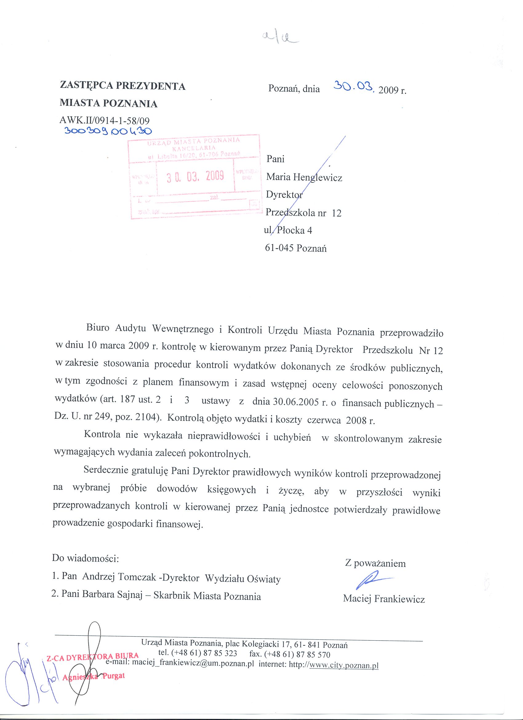 Informacja pobrana do BIP automatycznie z elektronicznego systemu zarządzania dokumentacją Urzędu Miasta Poznania.