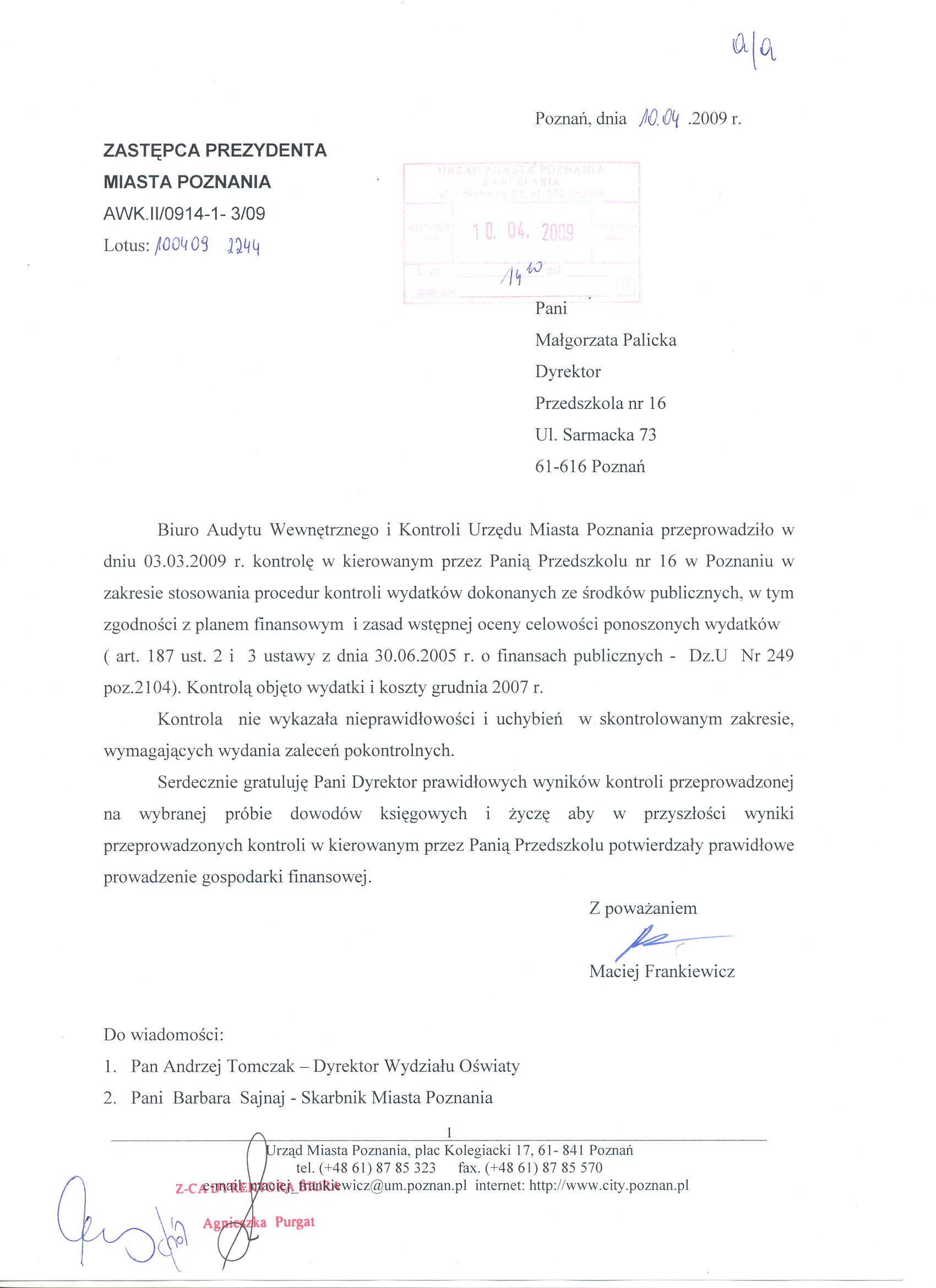 Informacja pobrana do BIP automatycznie z elektronicznego systemu zarządzania dokumentacją Urzędu Miasta Poznania.