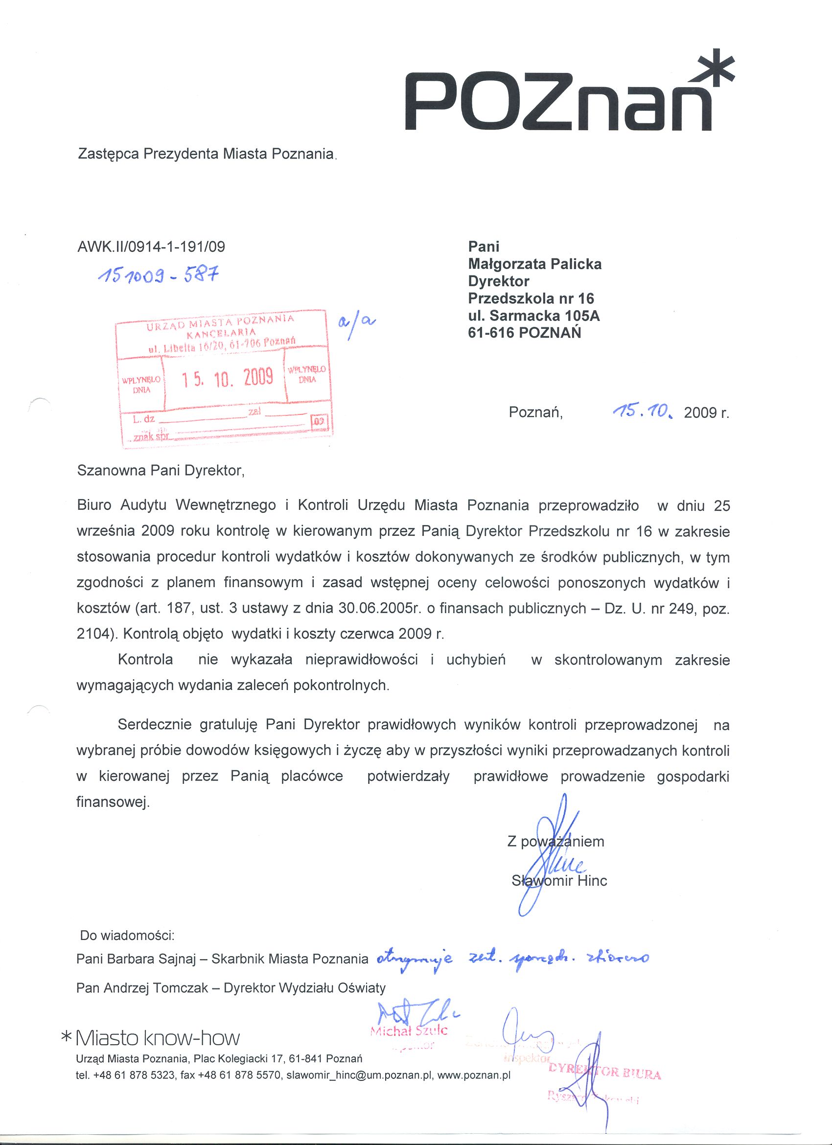 Informacja pobrana do BIP automatycznie z elektronicznego systemu zarządzania dokumentacją Urzędu Miasta Poznania.