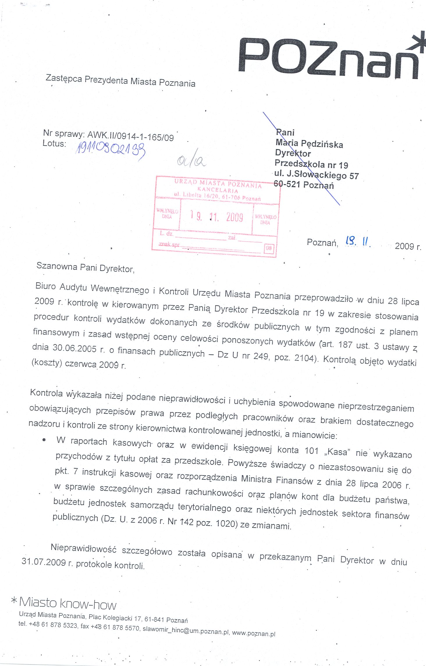 Informacja pobrana do BIP automatycznie z elektronicznego systemu zarządzania dokumentacją Urzędu Miasta Poznania.