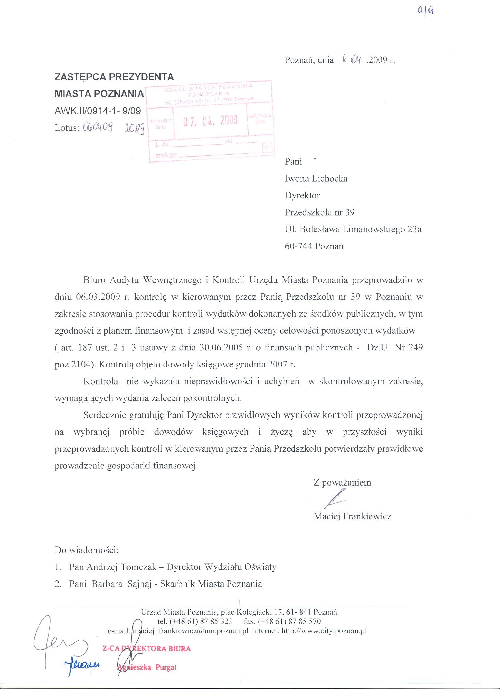 Informacja pobrana do BIP automatycznie z elektronicznego systemu zarządzania dokumentacją Urzędu Miasta Poznania.