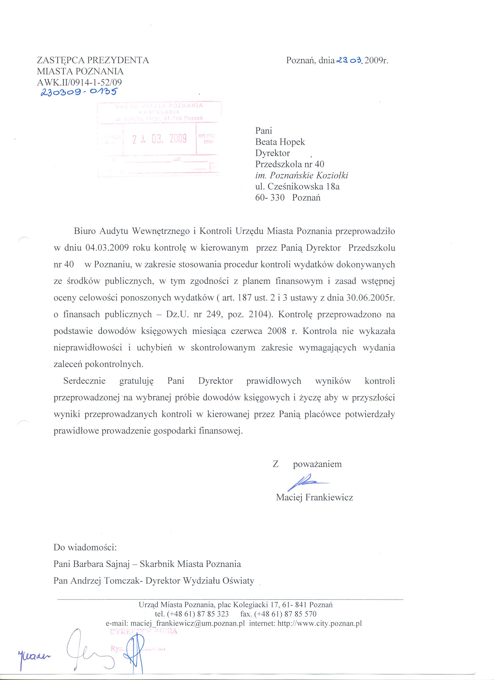 Informacja pobrana do BIP automatycznie z elektronicznego systemu zarządzania dokumentacją Urzędu Miasta Poznania.