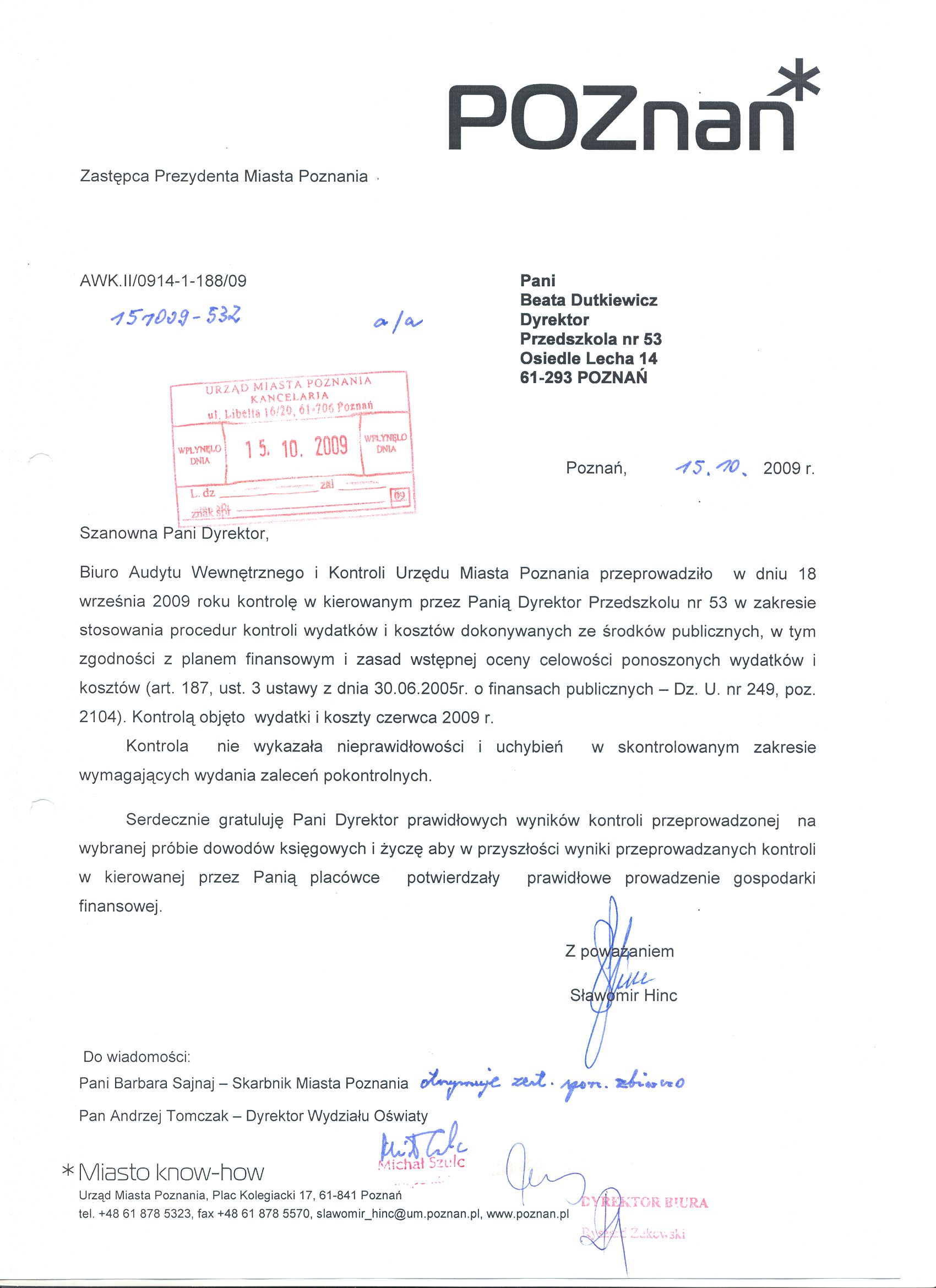 Informacja pobrana do BIP automatycznie z elektronicznego systemu zarządzania dokumentacją Urzędu Miasta Poznania.
