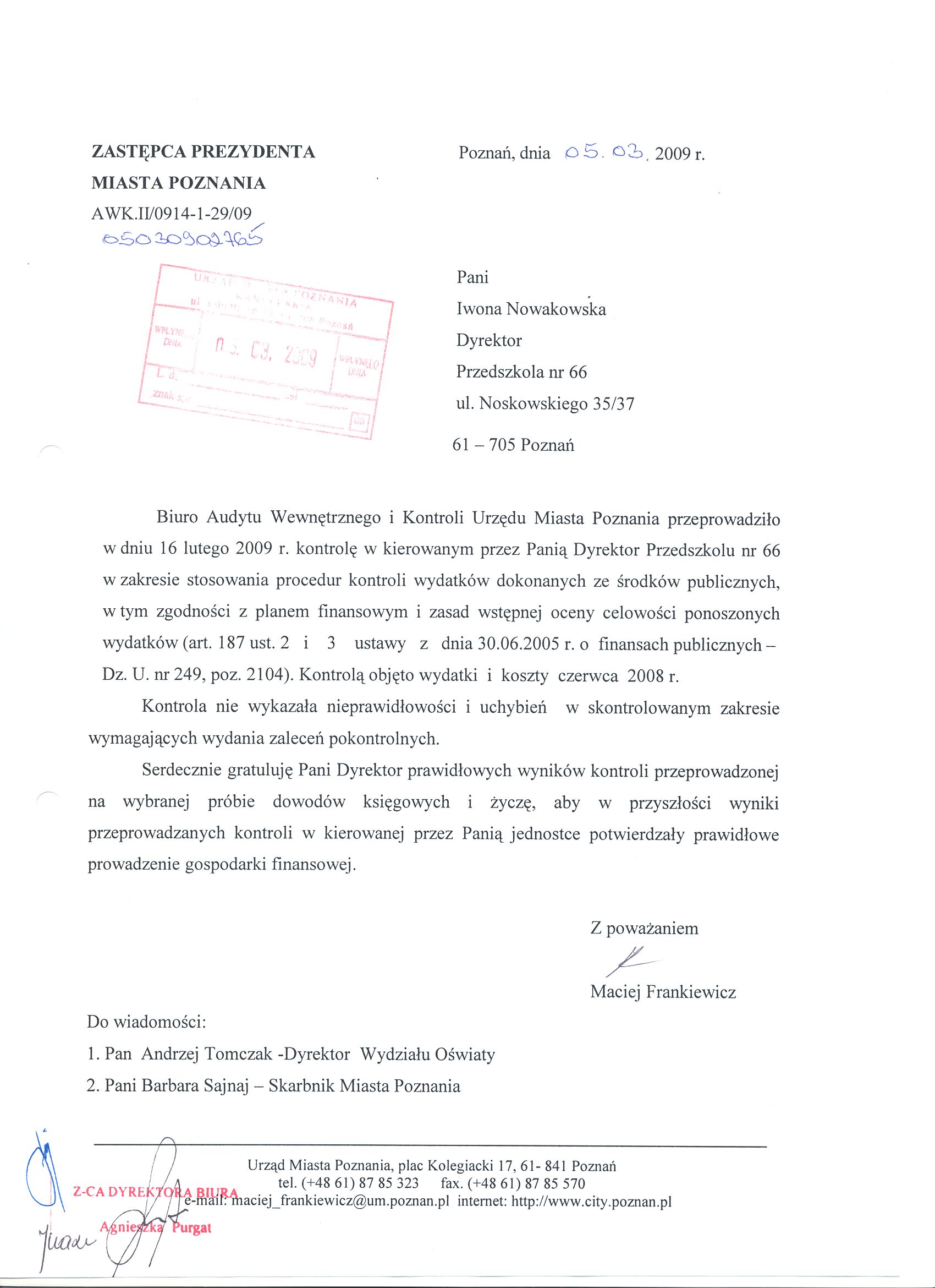 Informacja pobrana do BIP automatycznie z elektronicznego systemu zarządzania dokumentacją Urzędu Miasta Poznania.