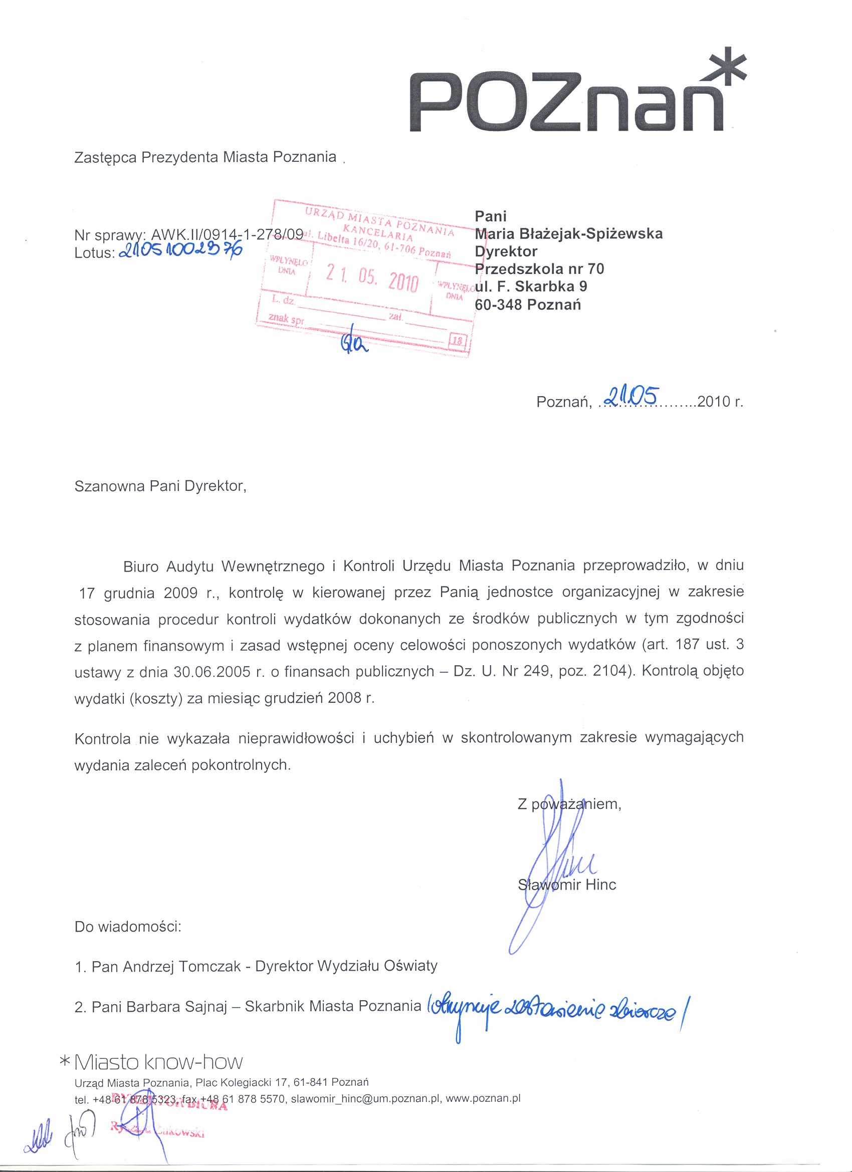 Informacja pobrana do BIP automatycznie z elektronicznego systemu zarządzania dokumentacją Urzędu Miasta Poznania.