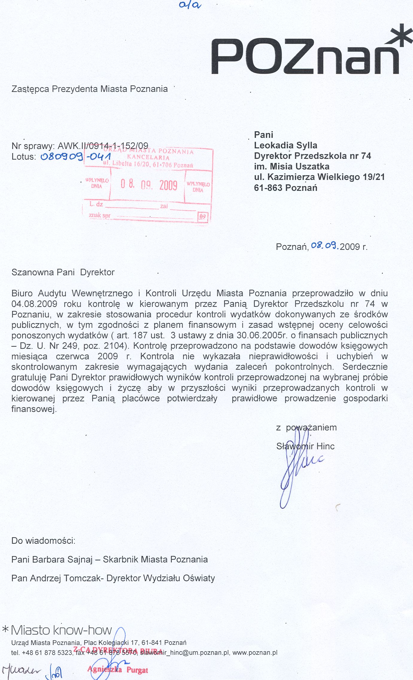 Informacja pobrana do BIP automatycznie z elektronicznego systemu zarządzania dokumentacją Urzędu Miasta Poznania.