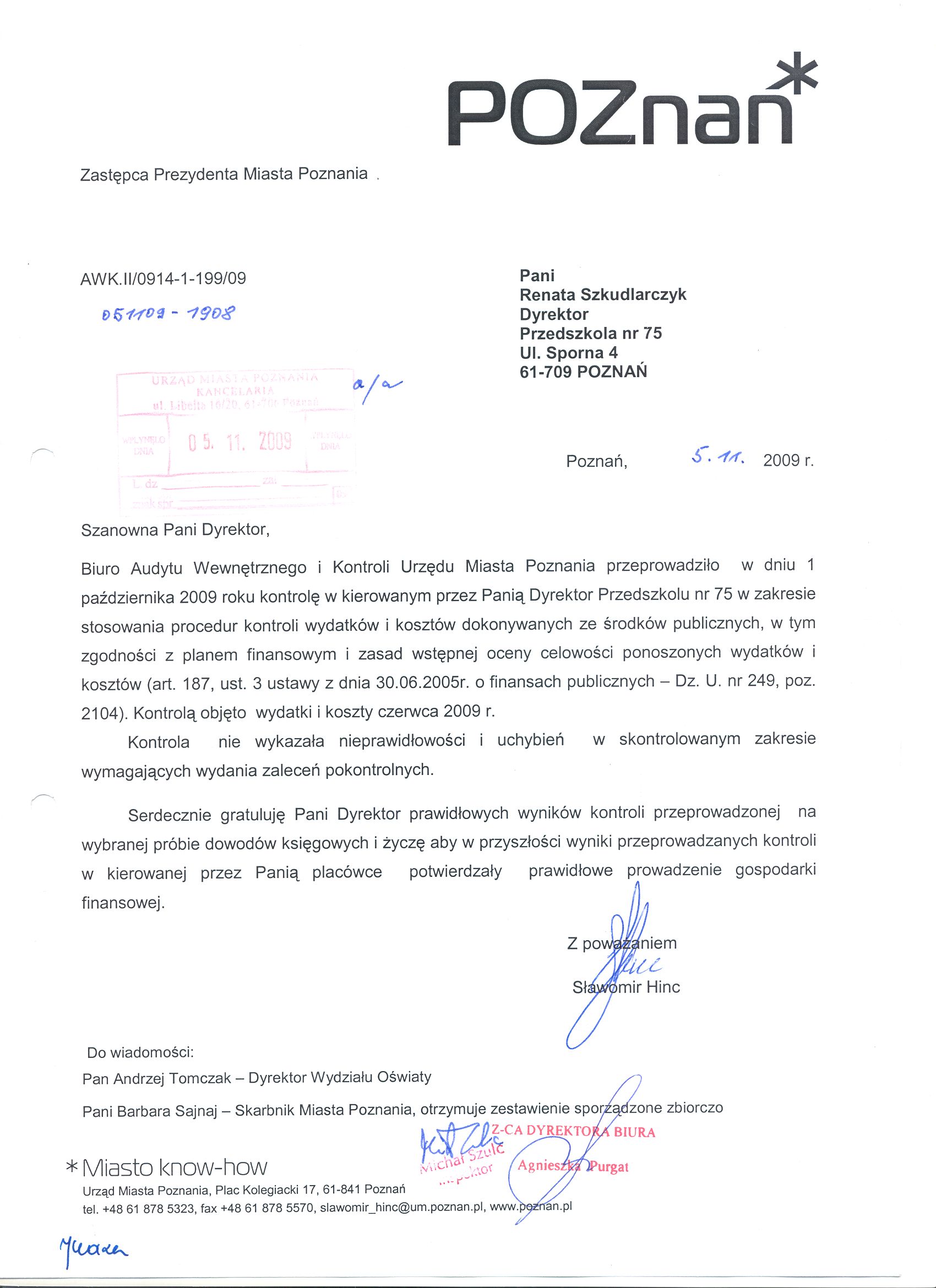 Informacja pobrana do BIP automatycznie z elektronicznego systemu zarządzania dokumentacją Urzędu Miasta Poznania.