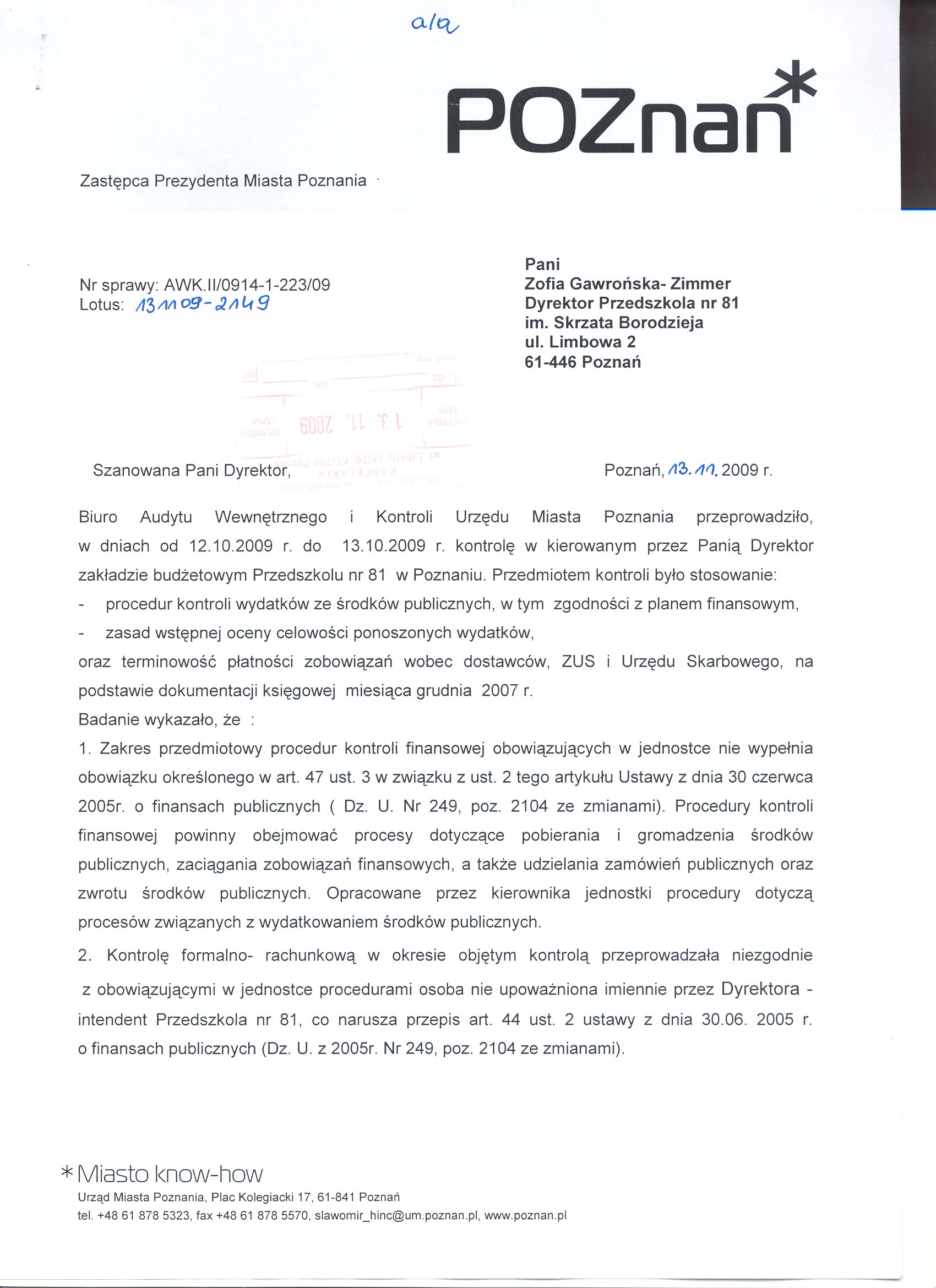 Kontrola: AWK.II/0914-1-223/09