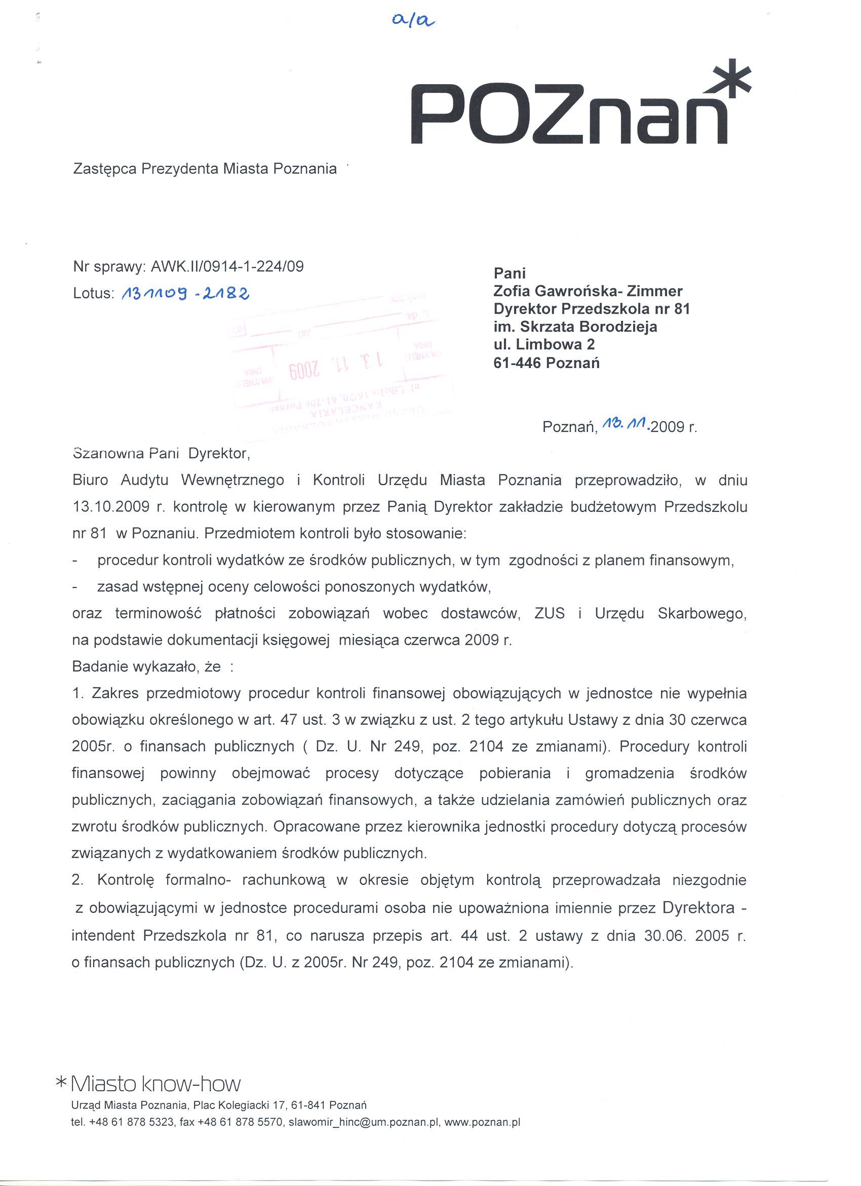 Informacja pobrana do BIP automatycznie z elektronicznego systemu zarządzania dokumentacją Urzędu Miasta Poznania.