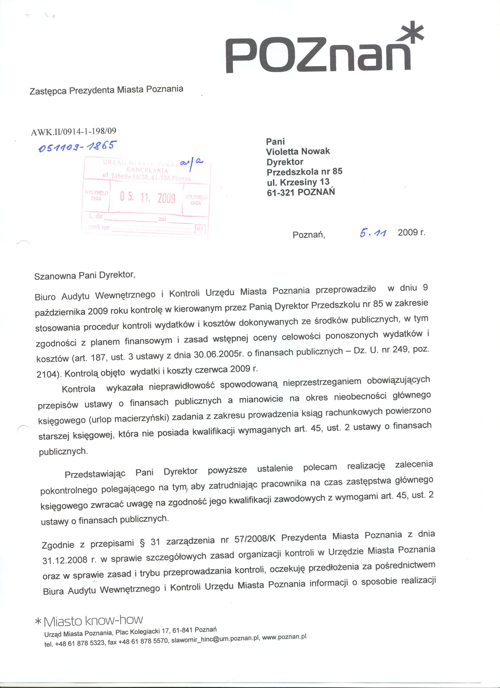 Informacja pobrana do BIP automatycznie z elektronicznego systemu zarządzania dokumentacją Urzędu Miasta Poznania.