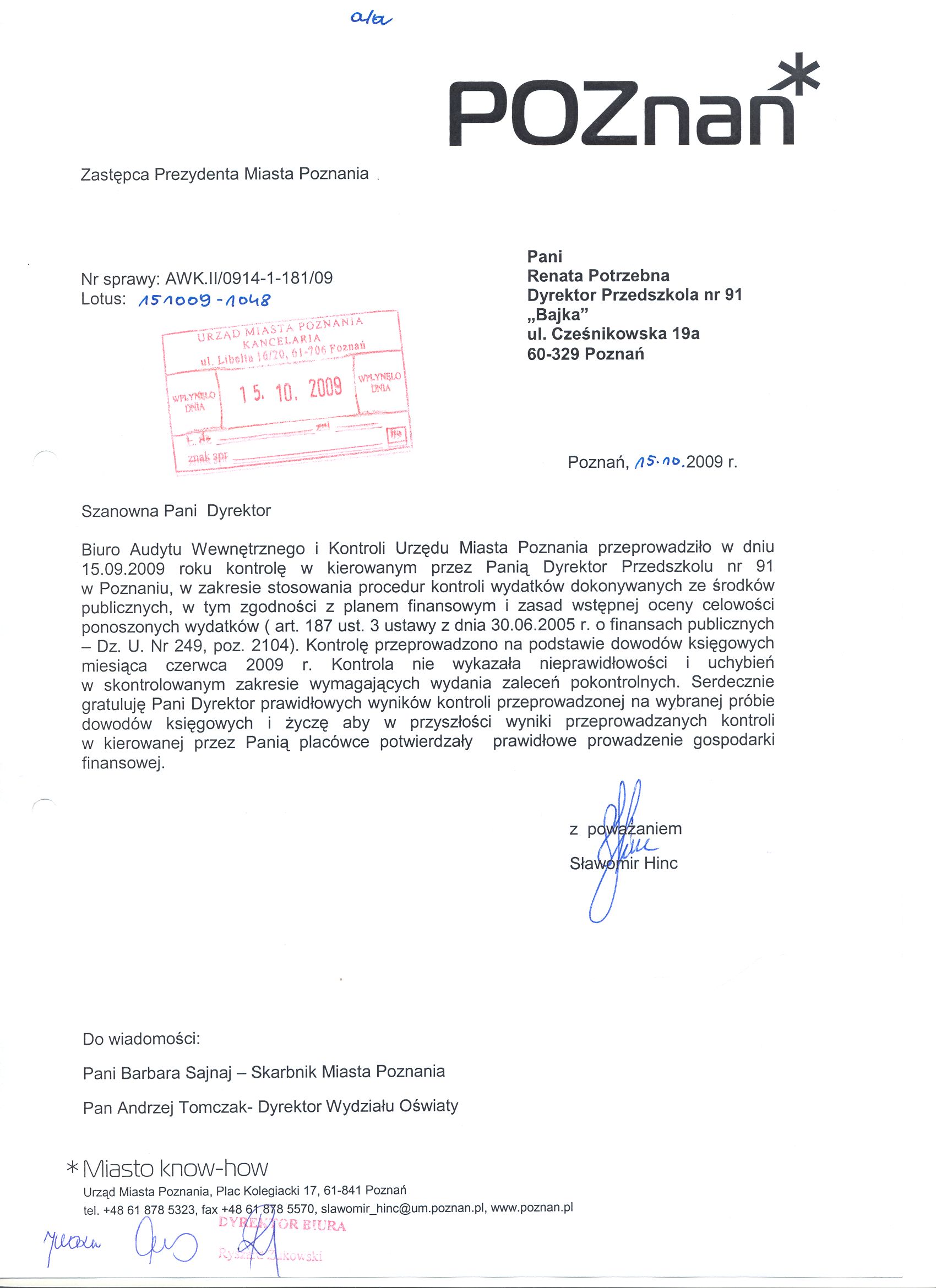 Informacja pobrana do BIP automatycznie z elektronicznego systemu zarządzania dokumentacją Urzędu Miasta Poznania.