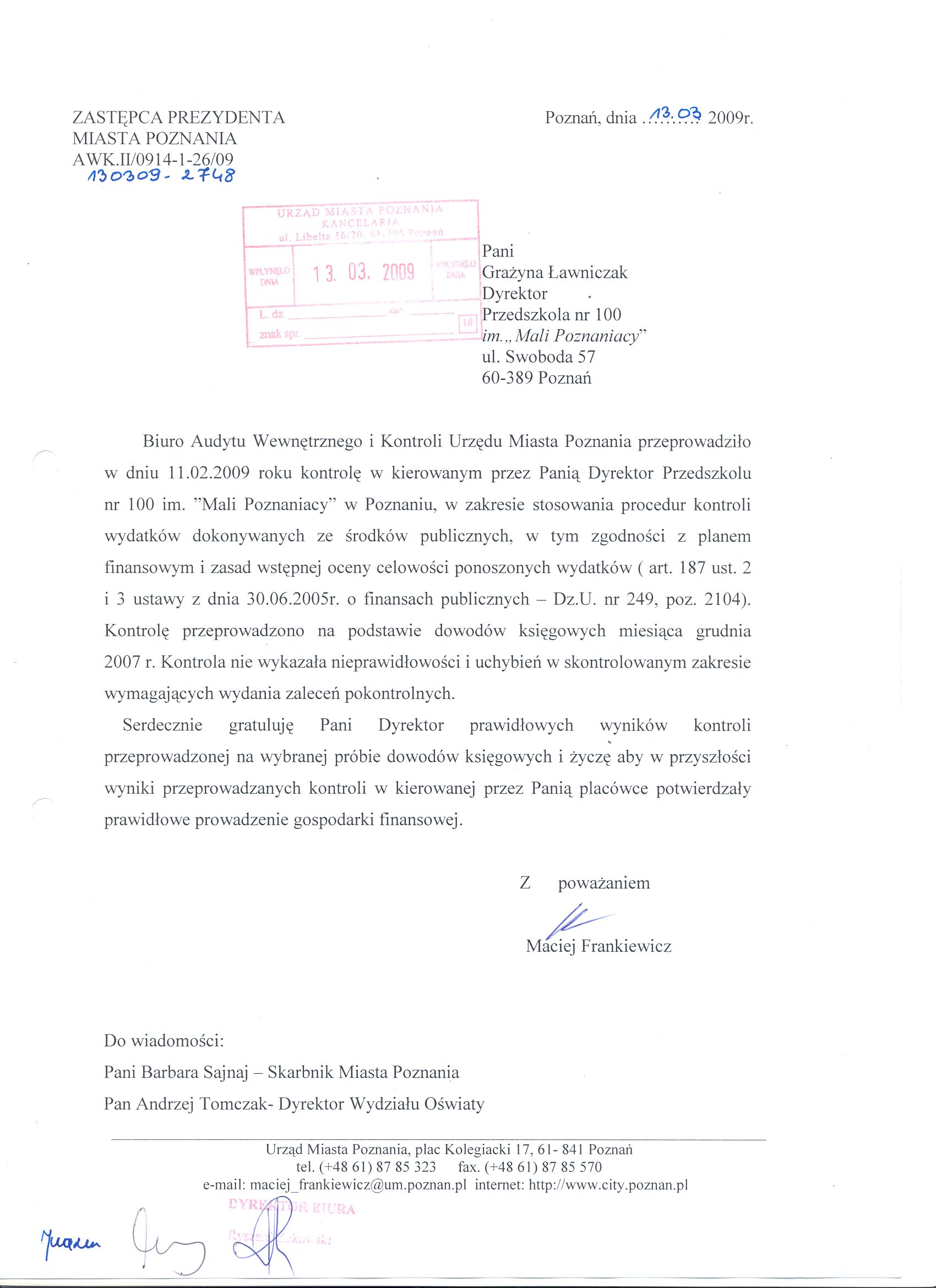 Informacja pobrana do BIP automatycznie z elektronicznego systemu zarządzania dokumentacją Urzędu Miasta Poznania.