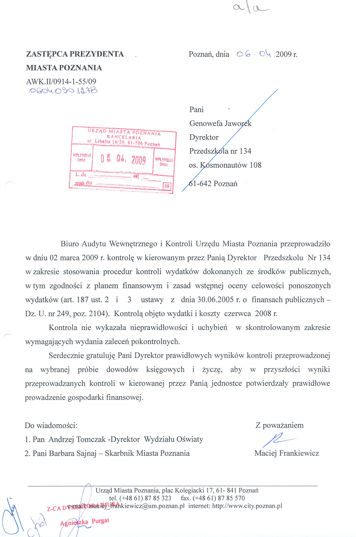 Informacja pobrana do BIP automatycznie z elektronicznego systemu zarządzania dokumentacją Urzędu Miasta Poznania.