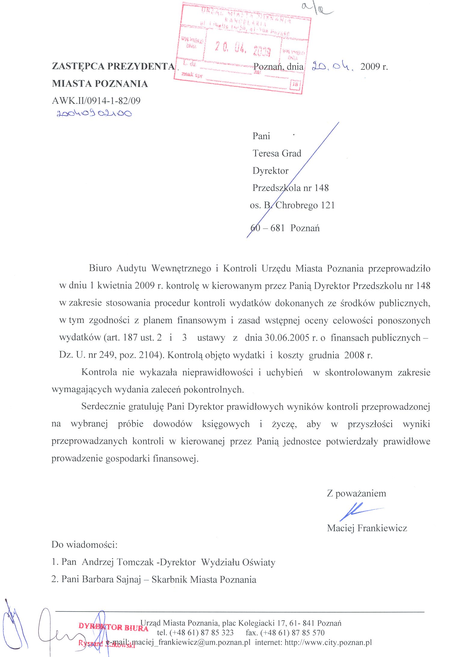 Informacja pobrana do BIP automatycznie z elektronicznego systemu zarządzania dokumentacją Urzędu Miasta Poznania.