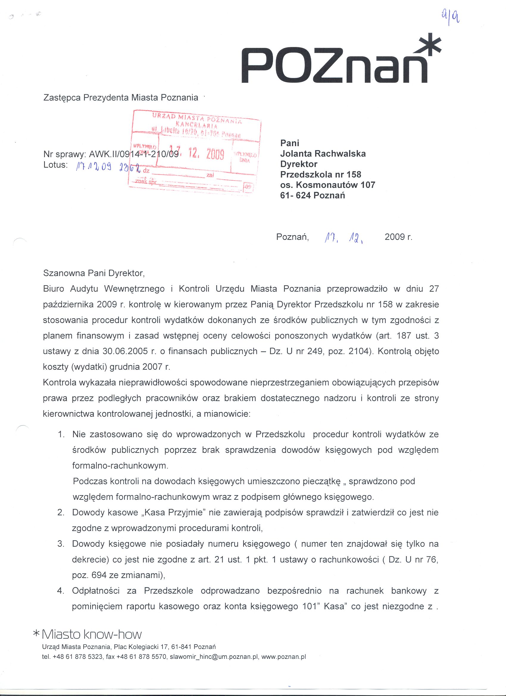 Informacja pobrana do BIP automatycznie z elektronicznego systemu zarządzania dokumentacją Urzędu Miasta Poznania.