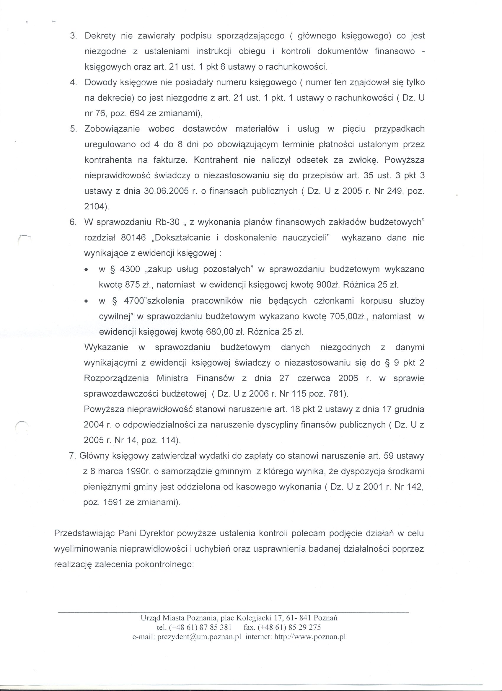 - tresć zaleceń zamieszczono w załączniku