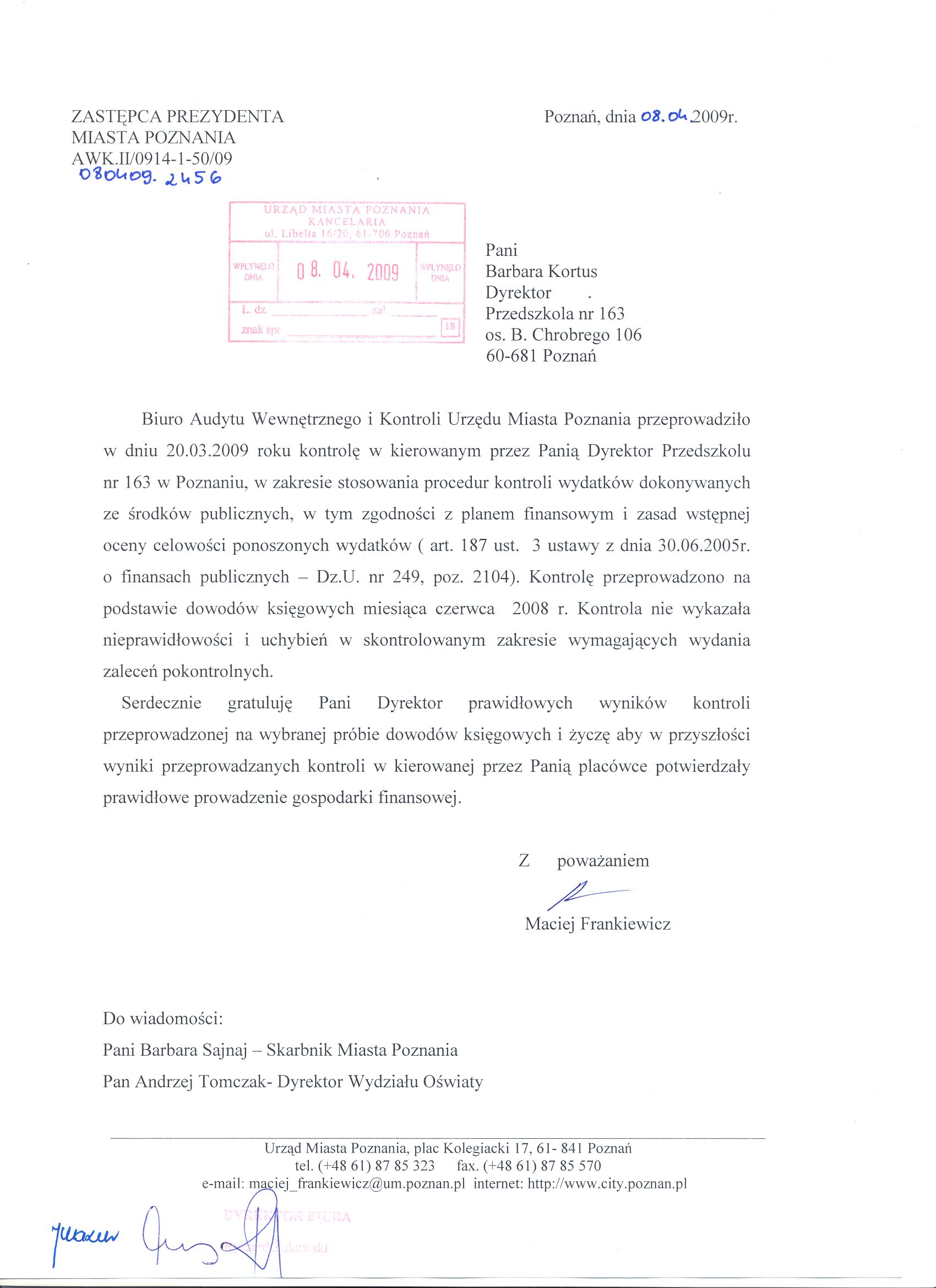Informacja pobrana do BIP automatycznie z elektronicznego systemu zarządzania dokumentacją Urzędu Miasta Poznania.