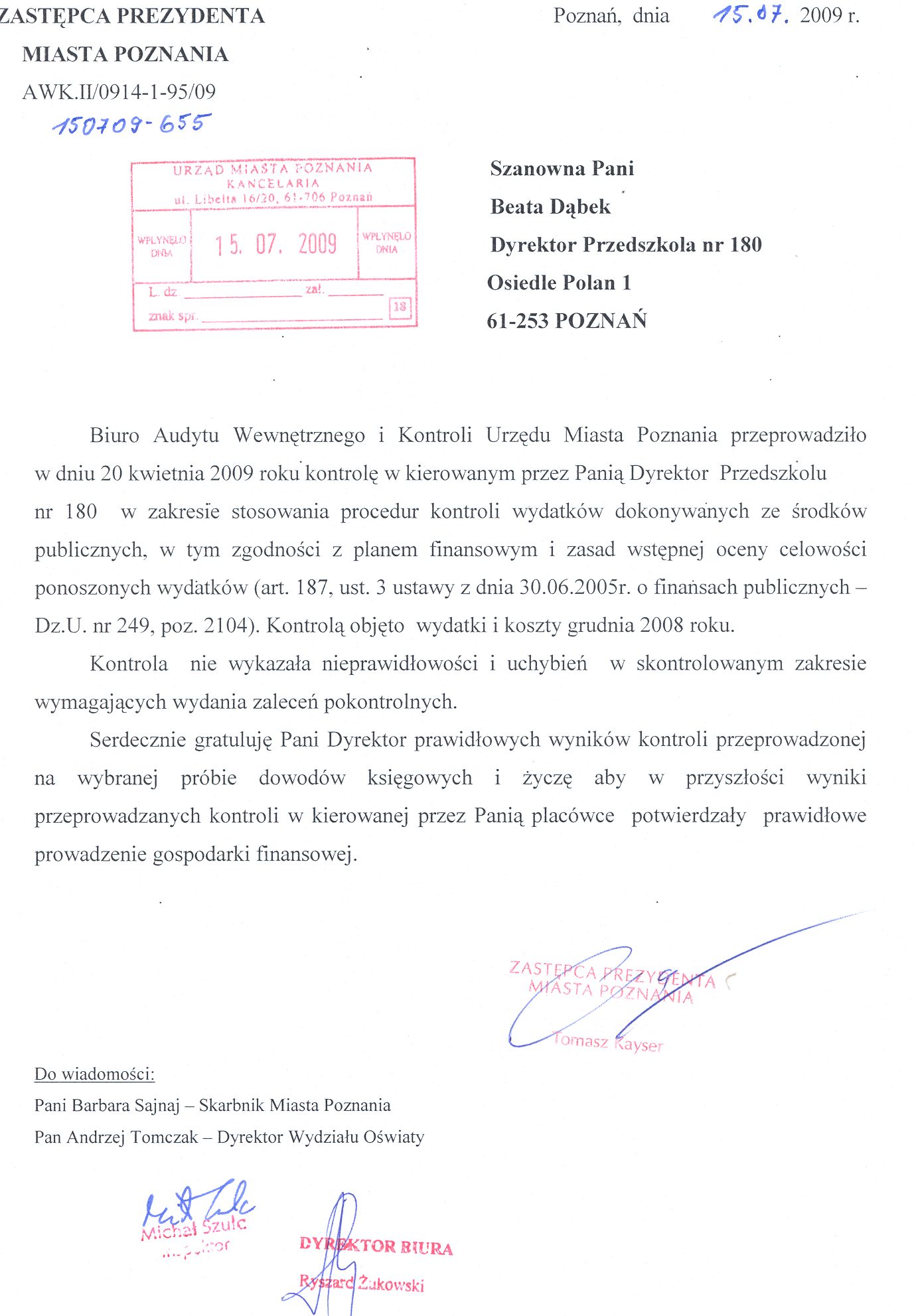 Informacja pobrana do BIP automatycznie z elektronicznego systemu zarządzania dokumentacją Urzędu Miasta Poznania.