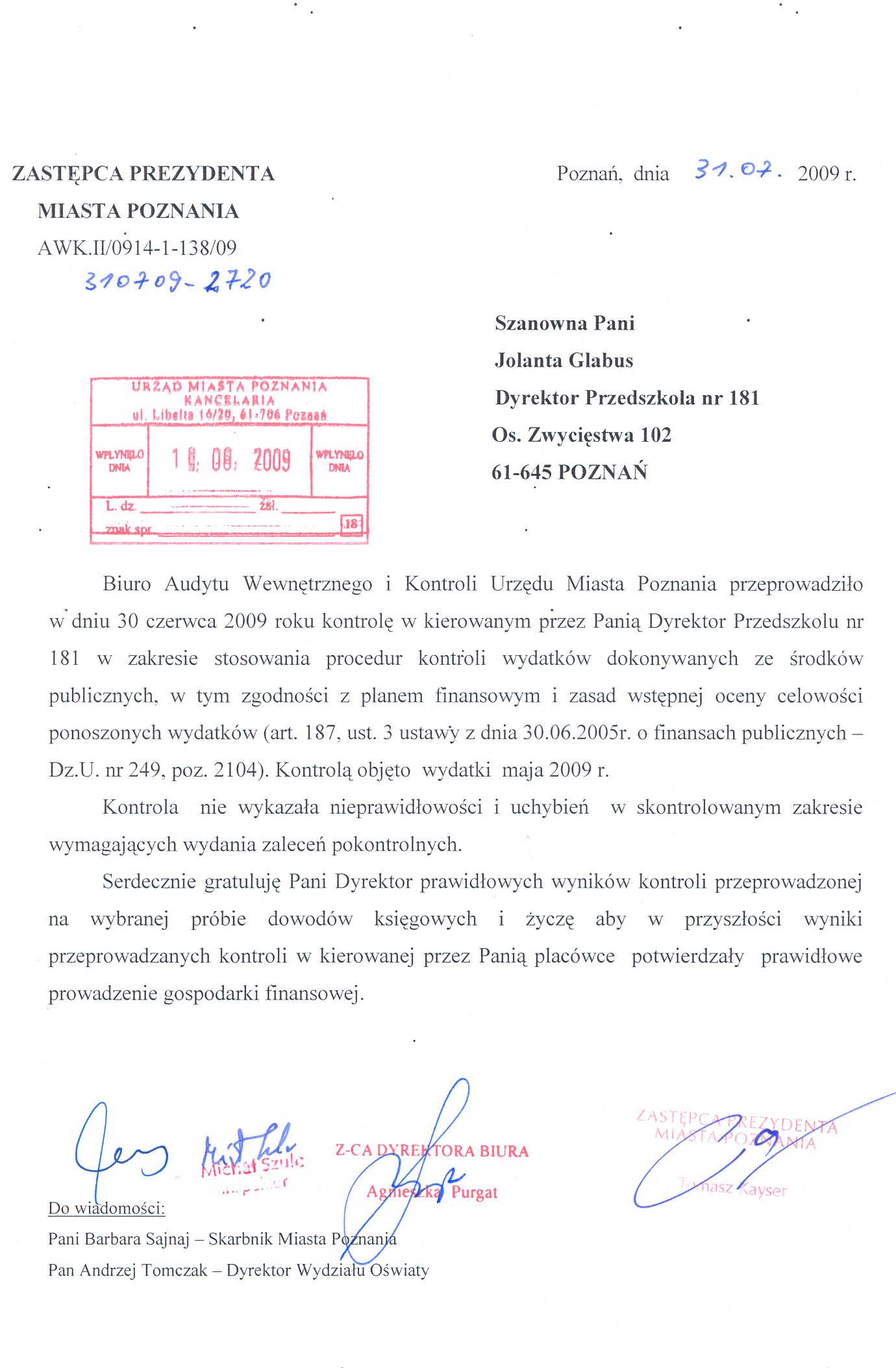Informacja pobrana do BIP automatycznie z elektronicznego systemu zarządzania dokumentacją Urzędu Miasta Poznania.