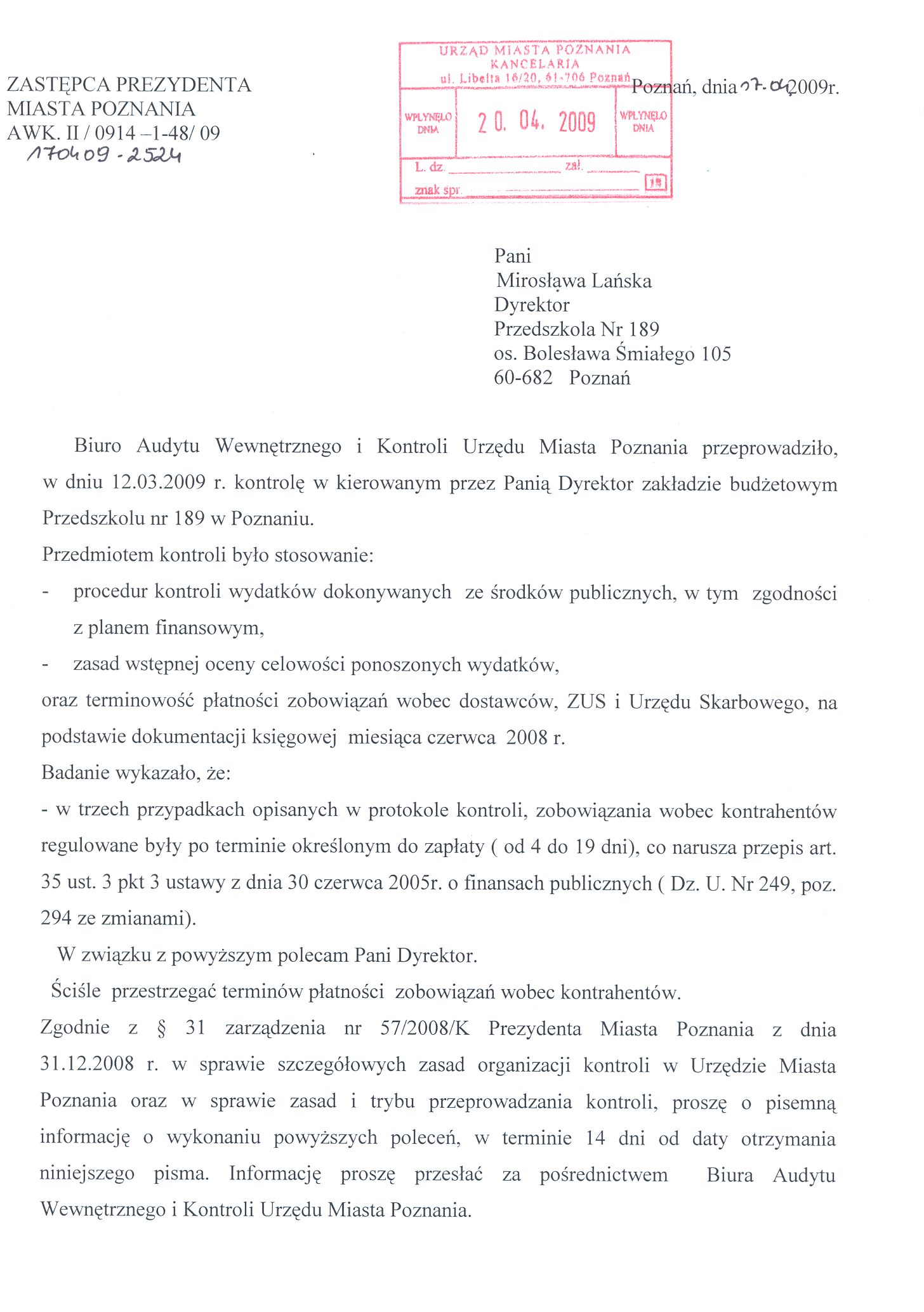 Informacja pobrana do BIP automatycznie z elektronicznego systemu zarządzania dokumentacją Urzędu Miasta Poznania.
