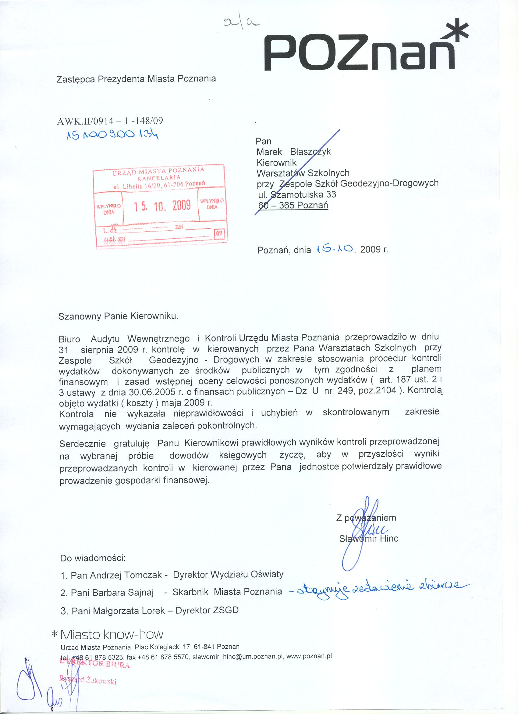 Informacja pobrana do BIP automatycznie z elektronicznego systemu zarządzania dokumentacją Urzędu Miasta Poznania.