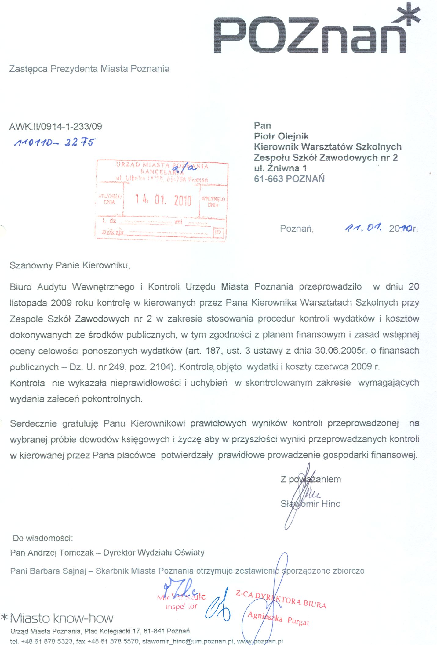 Informacja pobrana do BIP automatycznie z elektronicznego systemu zarządzania dokumentacją Urzędu Miasta Poznania.