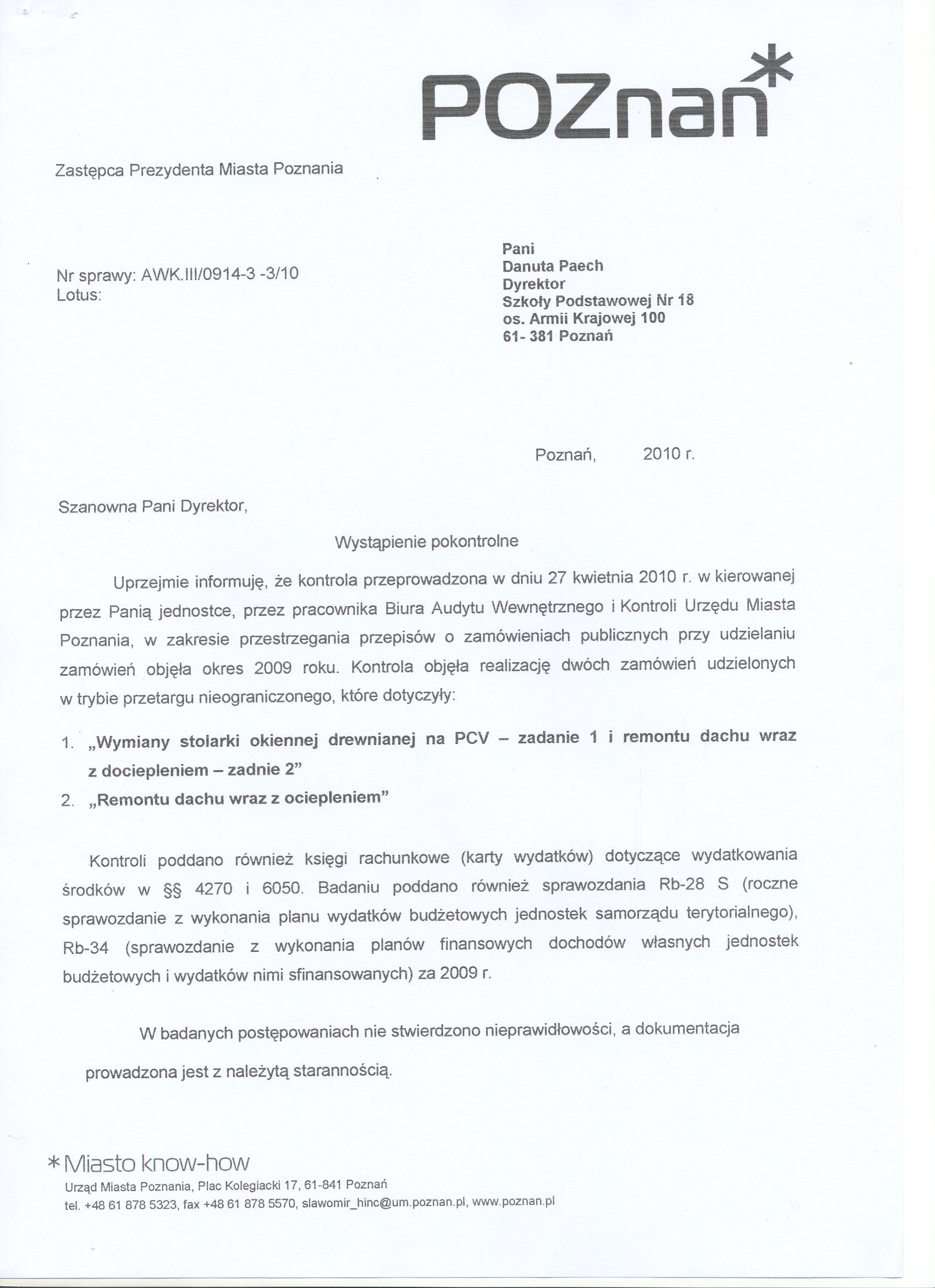 Informacja pobrana do BIP automatycznie z elektronicznego systemu zarządzania dokumentacją Urzędu Miasta Poznania.