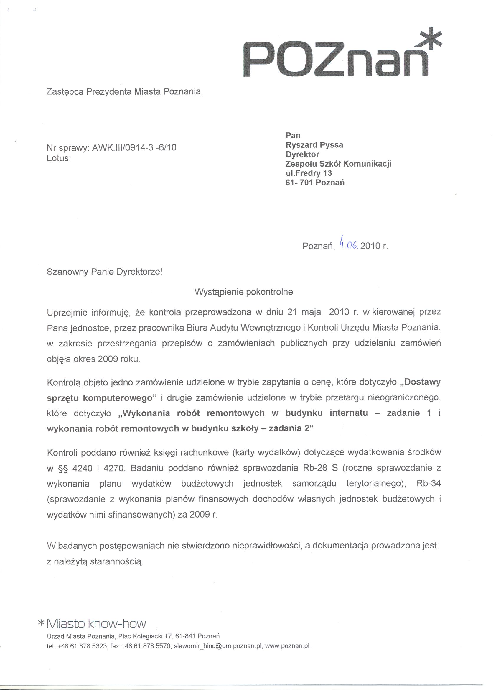 Informacja pobrana do BIP automatycznie z elektronicznego systemu zarządzania dokumentacją Urzędu Miasta Poznania.