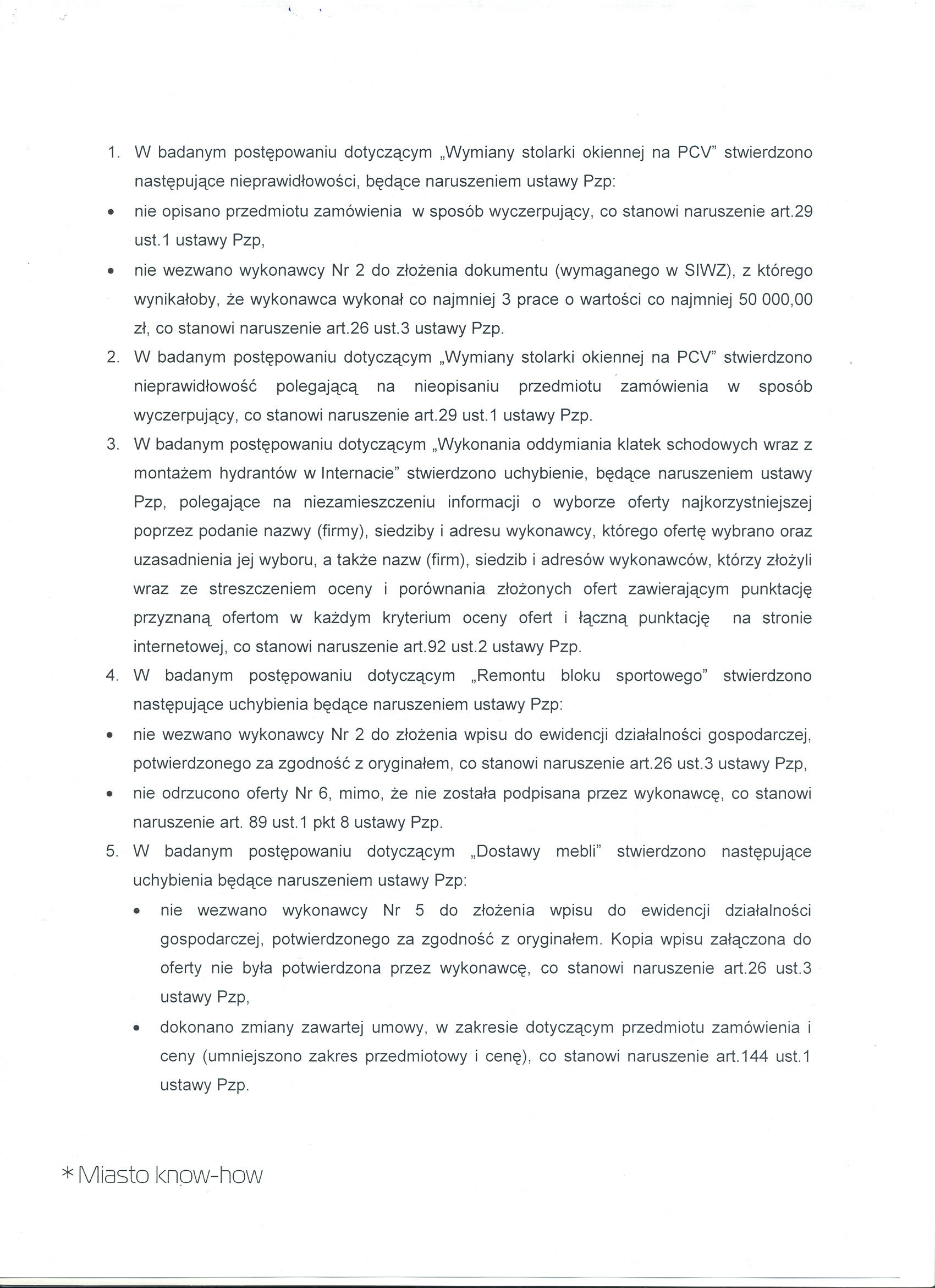 - 2. Wzywania wykonawców do składania brakujących w ofercie dokumentów, zgodnie z dyspozycją art.26 ust.3 ustawy Pzp.