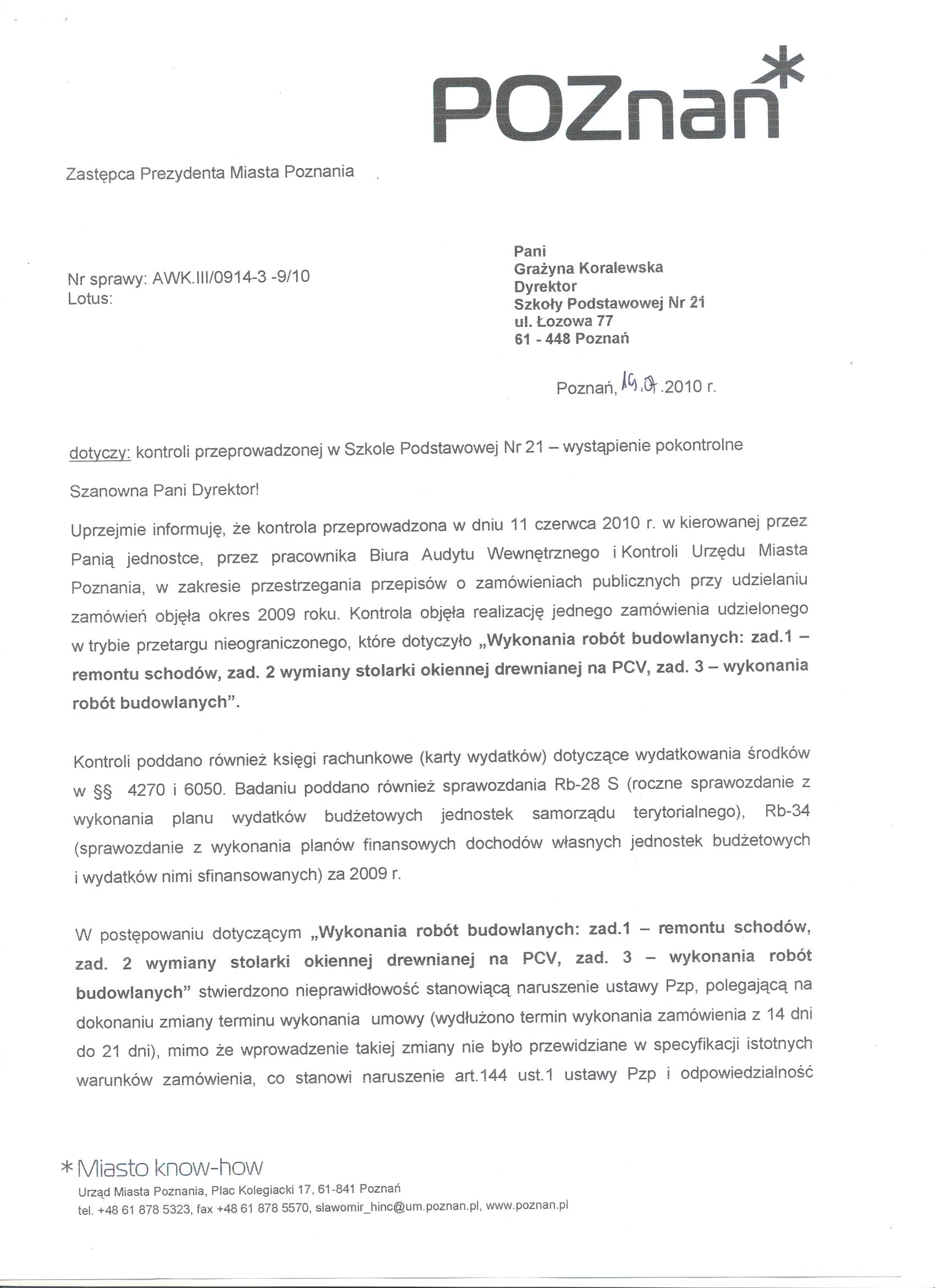 Informacja pobrana do BIP automatycznie z elektronicznego systemu zarządzania dokumentacją Urzędu Miasta Poznania.