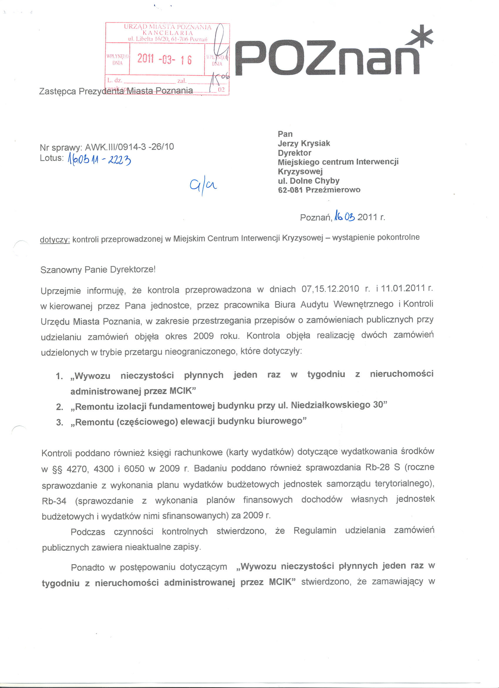 Kontrola: AWK.III/0914-3-26/10