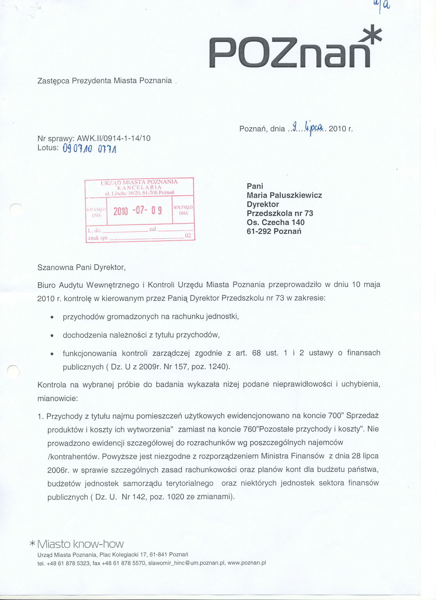 Informacja pobrana do BIP automatycznie z elektronicznego systemu zarządzania dokumentacją Urzędu Miasta Poznania.