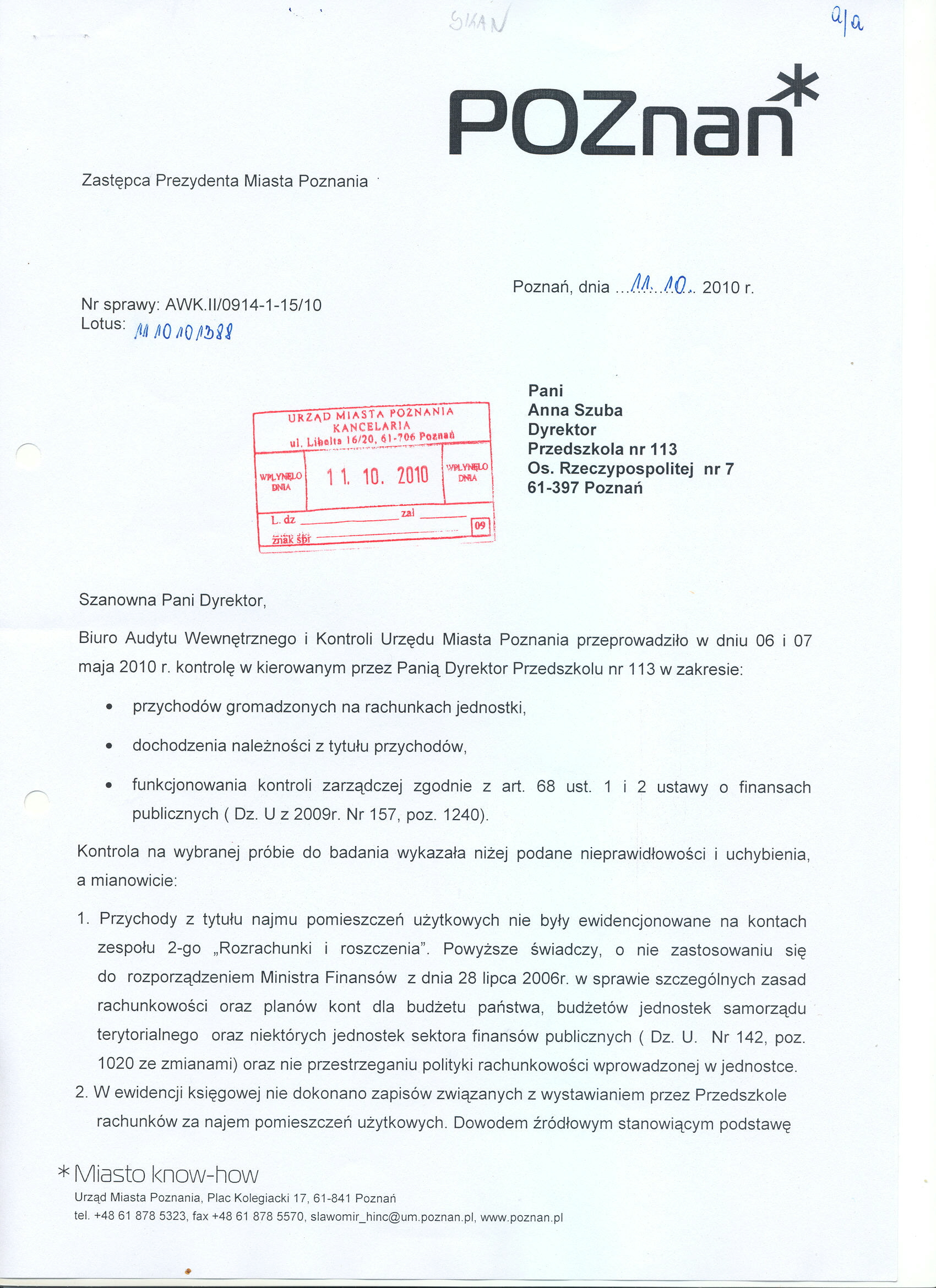 Informacja pobrana do BIP automatycznie z elektronicznego systemu zarządzania dokumentacją Urzędu Miasta Poznania.