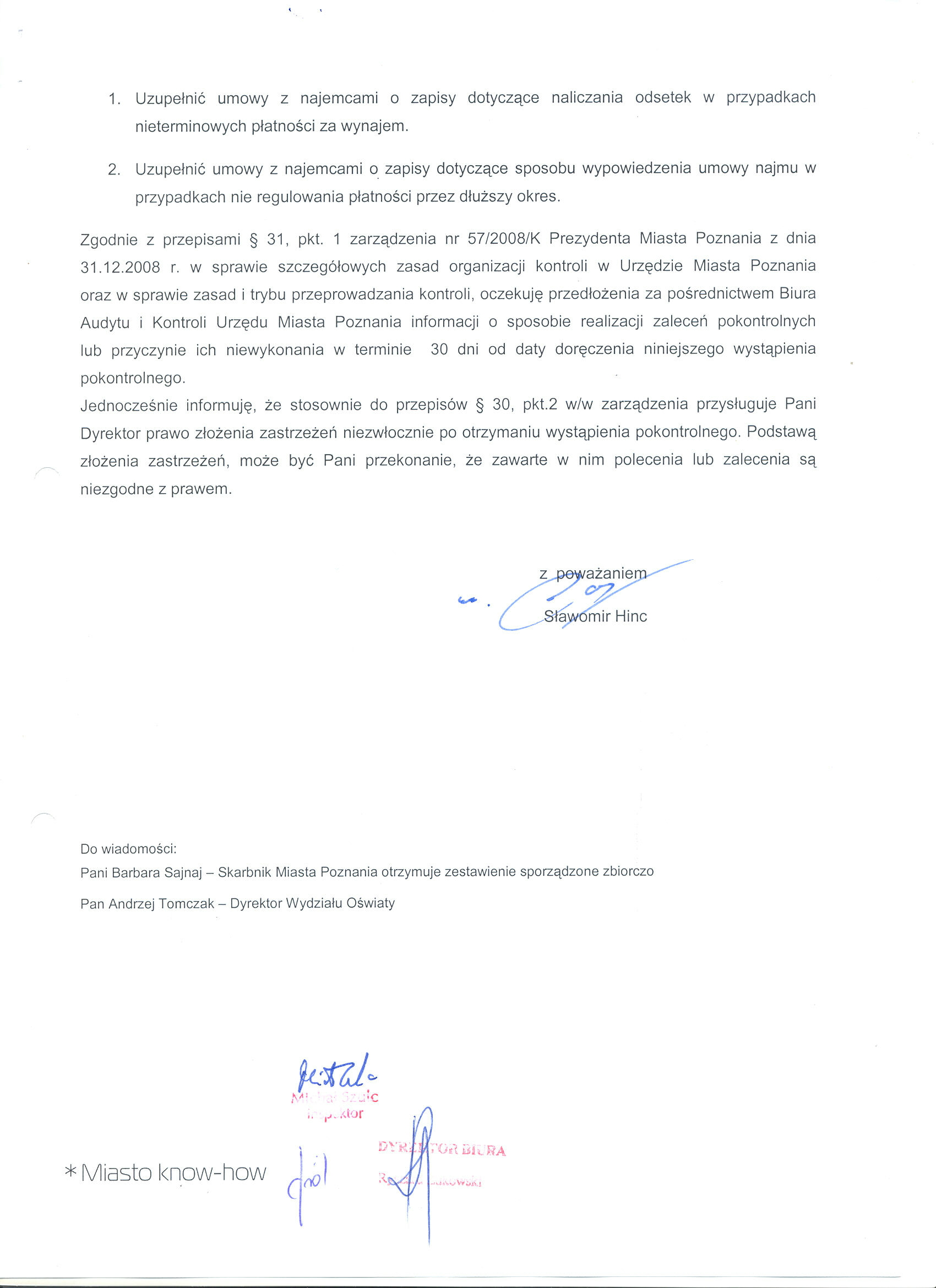- 2. Uzupełnić umowy o zapisy dot. sposobu wypow. umowy w przyp. nie reg. płatn. przez dłuższy okres