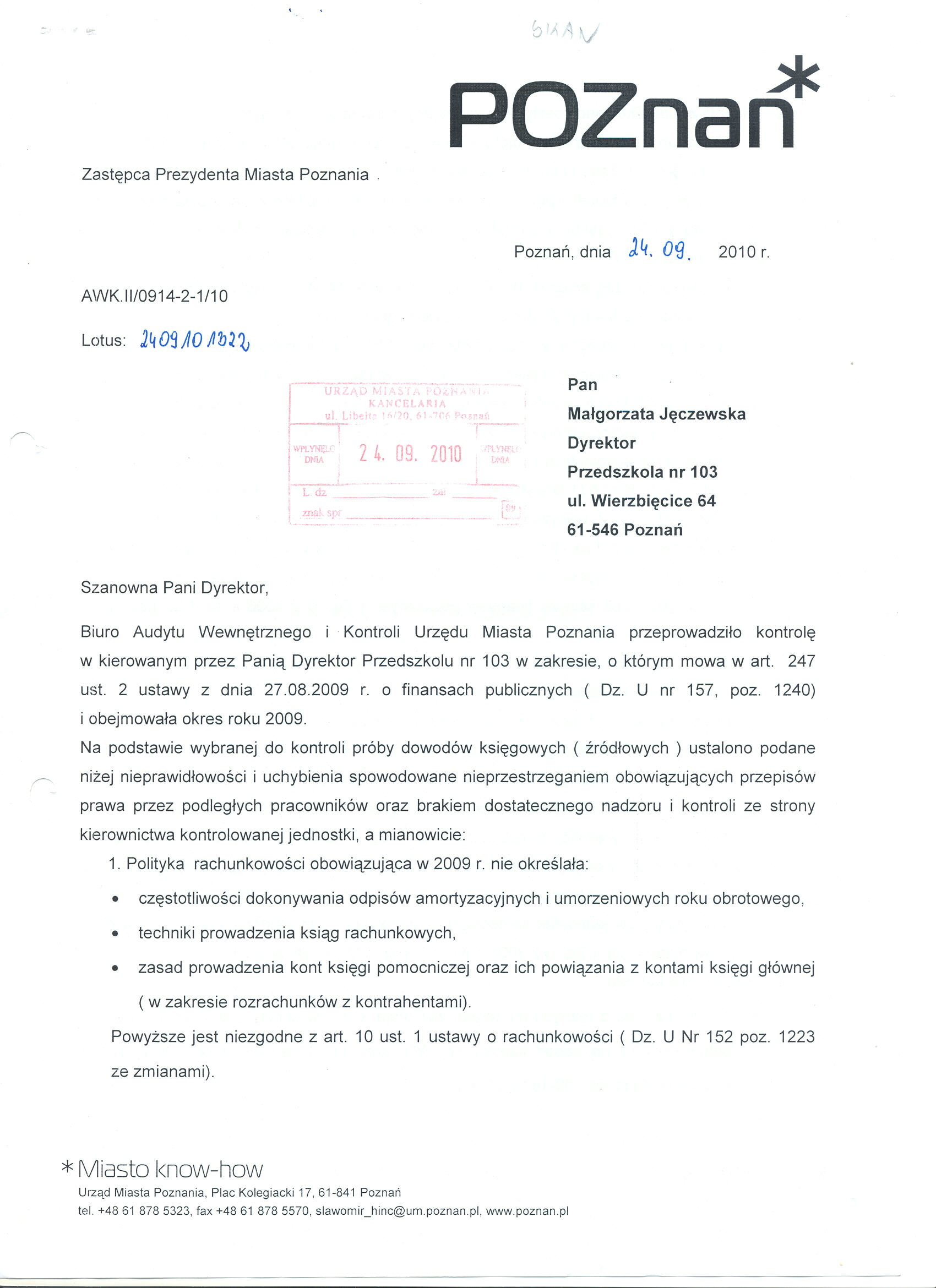 Informacja pobrana do BIP automatycznie z elektronicznego systemu zarządzania dokumentacją Urzędu Miasta Poznania.