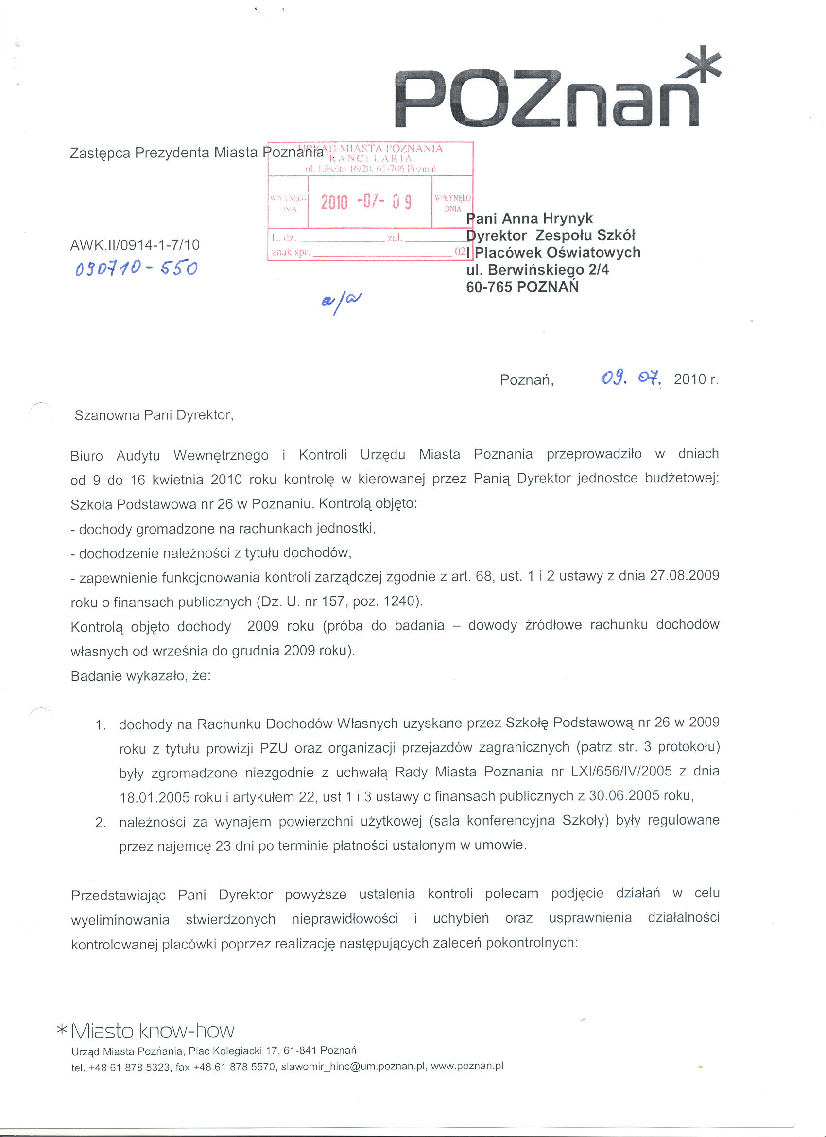 - Szkoła Podstawowa Nr 26 Ul. R. Berwińskiego 2/4 Poznań