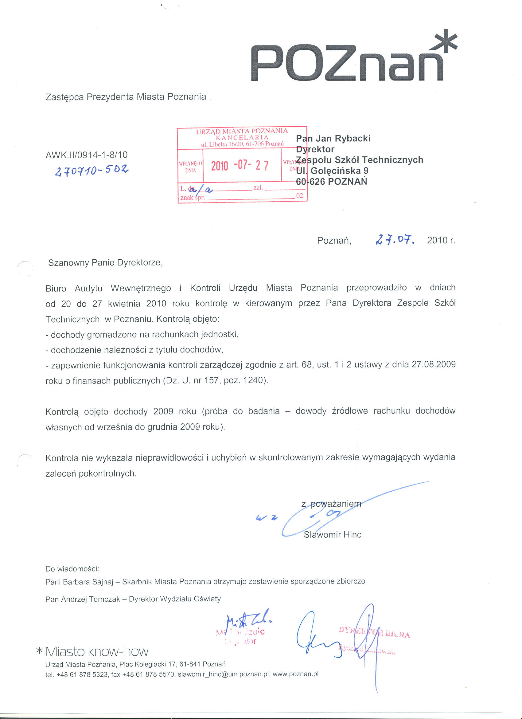Informacja pobrana do BIP automatycznie z elektronicznego systemu zarządzania dokumentacją Urzędu Miasta Poznania.