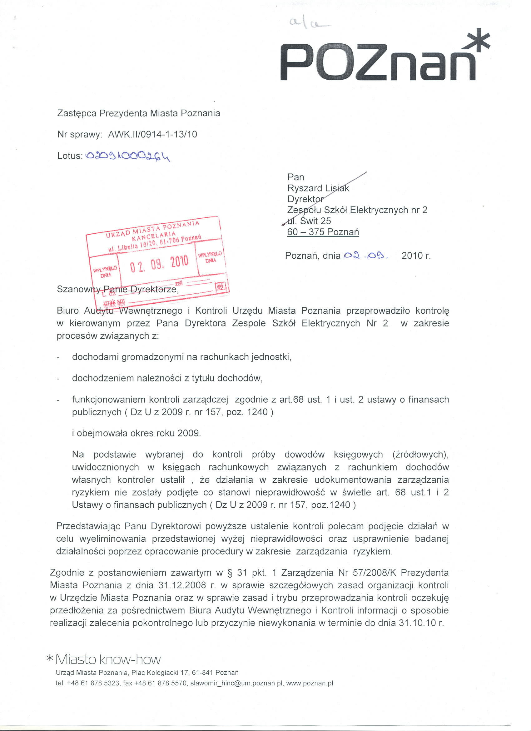 Informacja pobrana do BIP automatycznie z elektronicznego systemu zarządzania dokumentacją Urzędu Miasta Poznania.