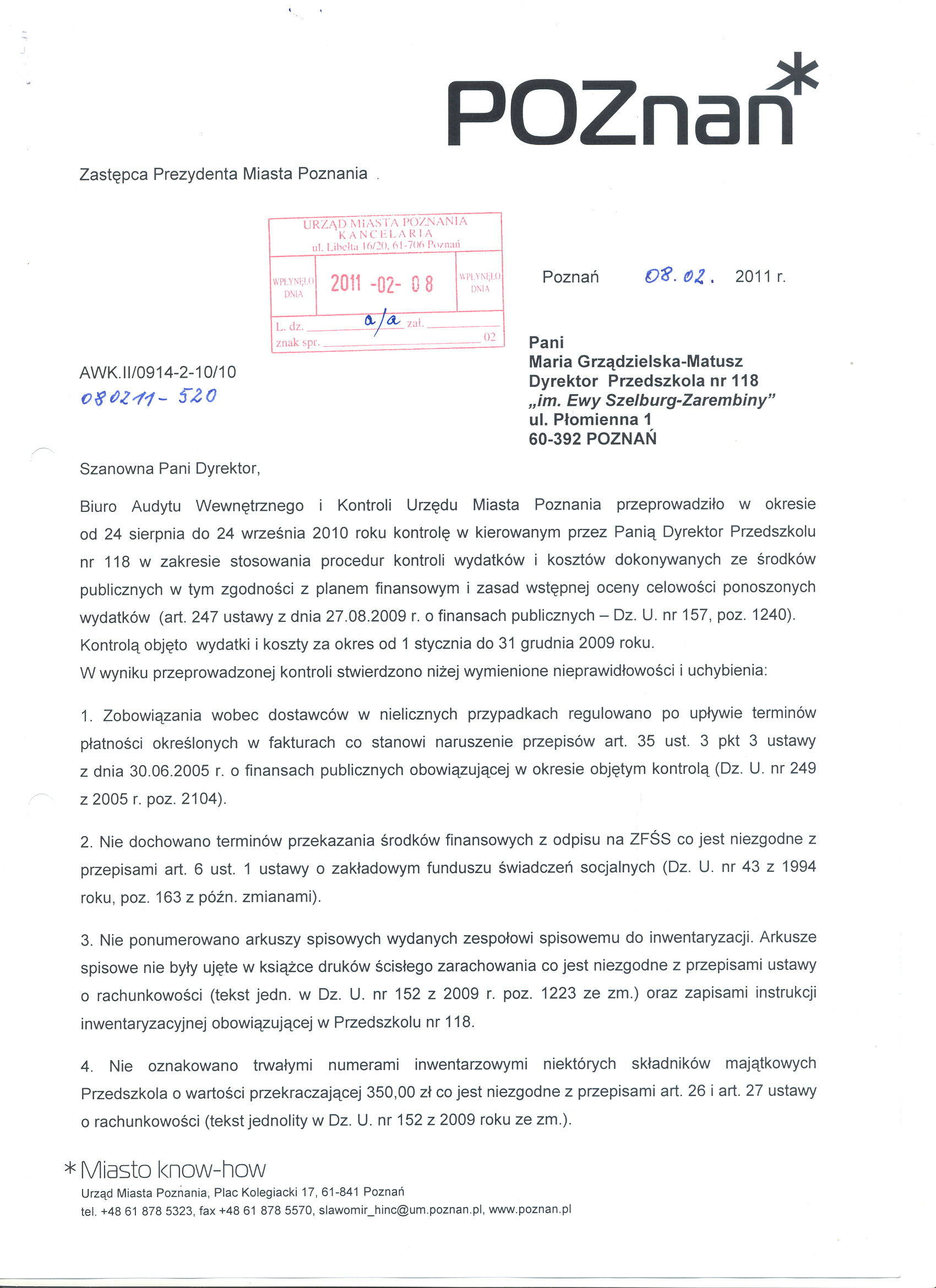 Informacja pobrana do BIP automatycznie z elektronicznego systemu zarządzania dokumentacją Urzędu Miasta Poznania.