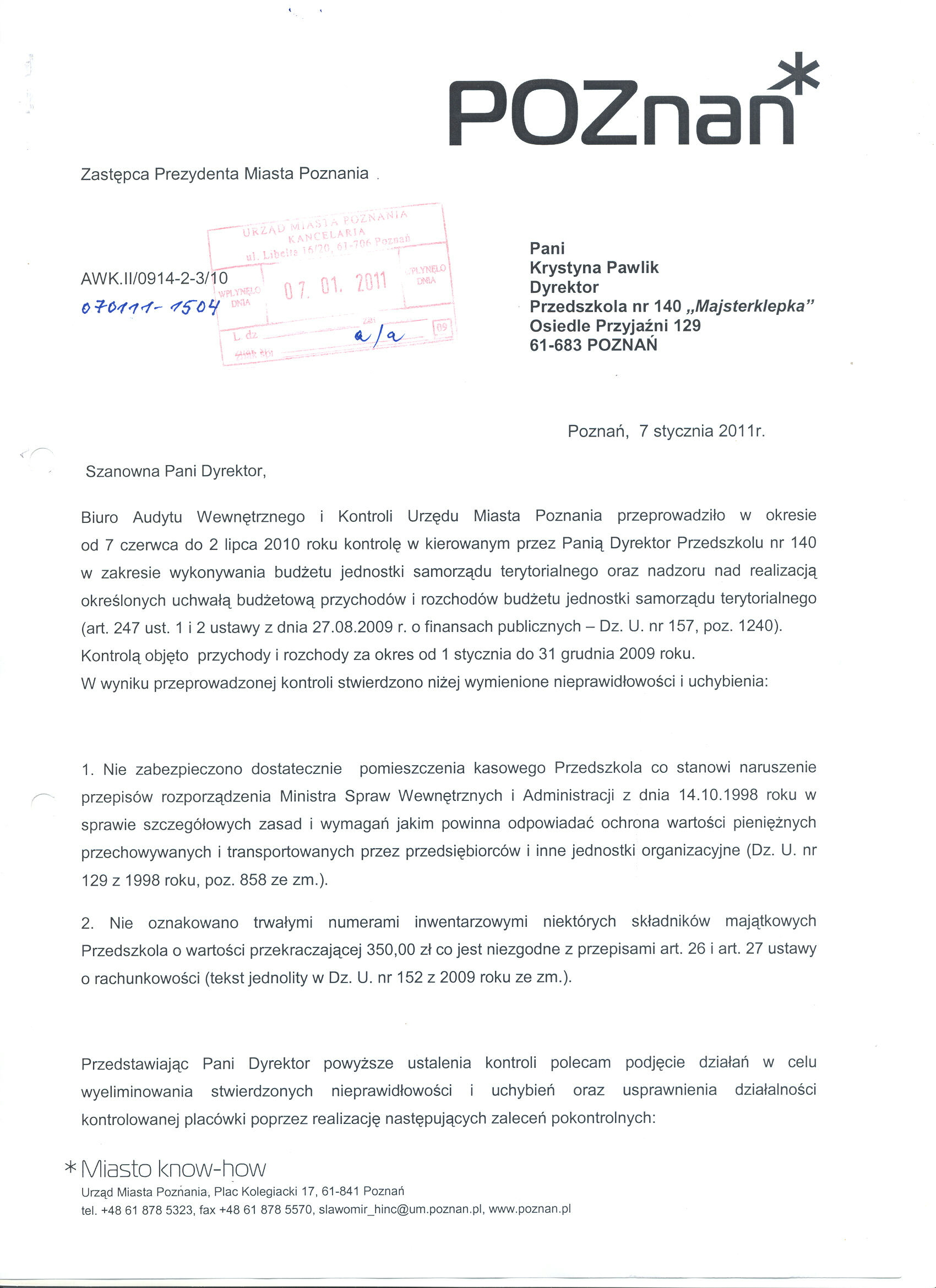 Informacja pobrana do BIP automatycznie z elektronicznego systemu zarządzania dokumentacją Urzędu Miasta Poznania.