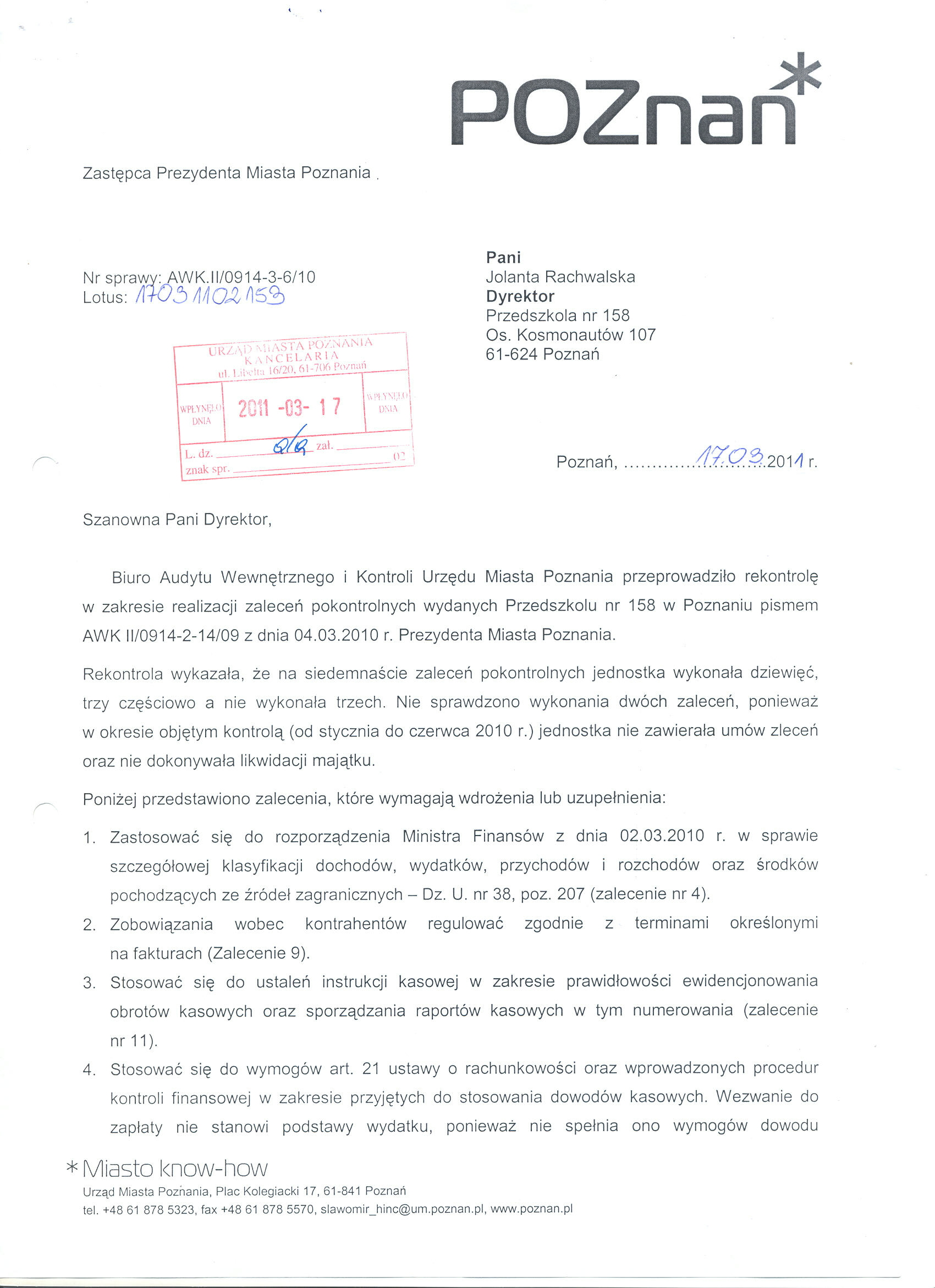Informacja pobrana do BIP automatycznie z elektronicznego systemu zarządzania dokumentacją Urzędu Miasta Poznania.