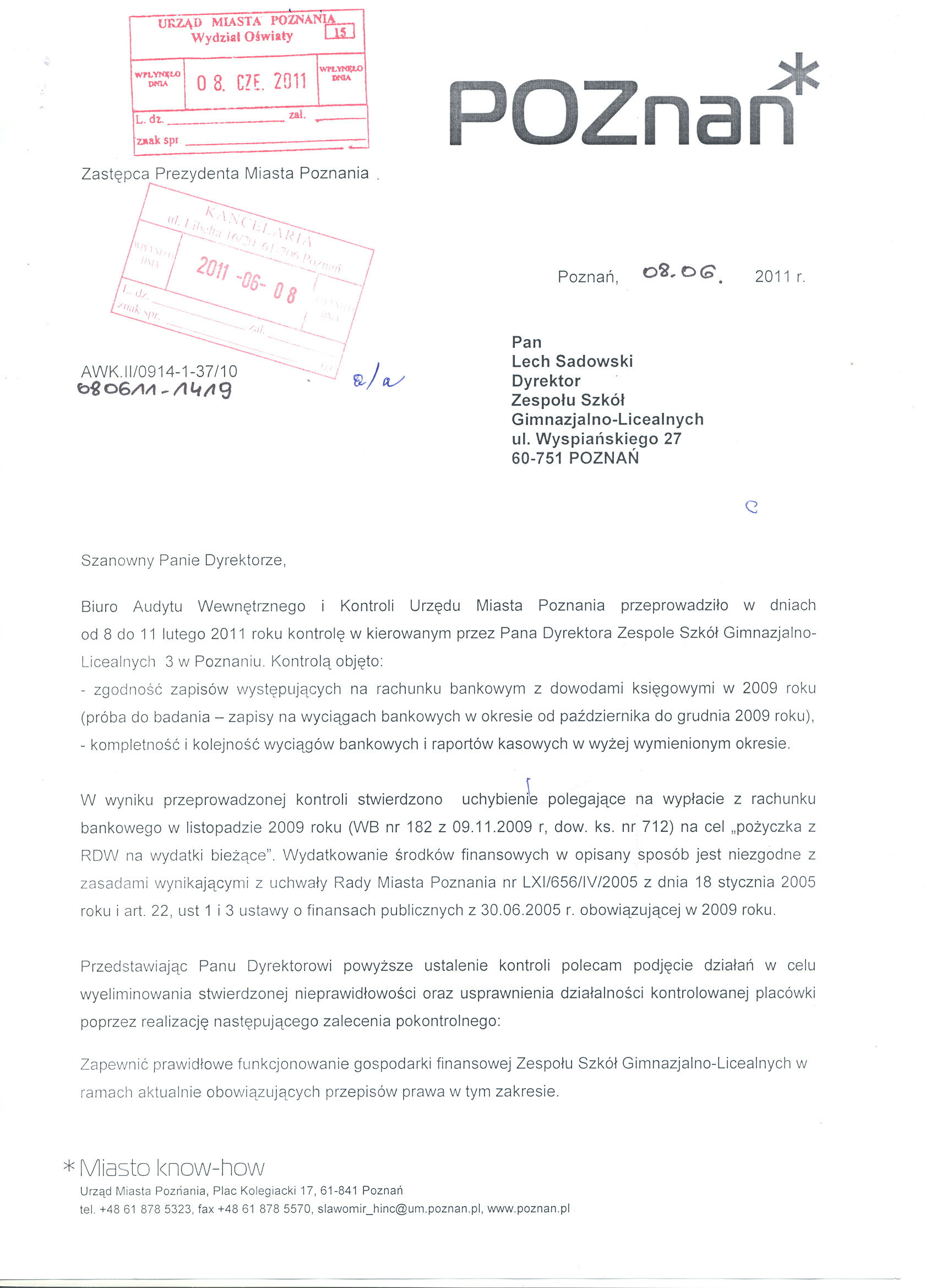Informacja pobrana do BIP automatycznie z elektronicznego systemu zarządzania dokumentacją Urzędu Miasta Poznania.