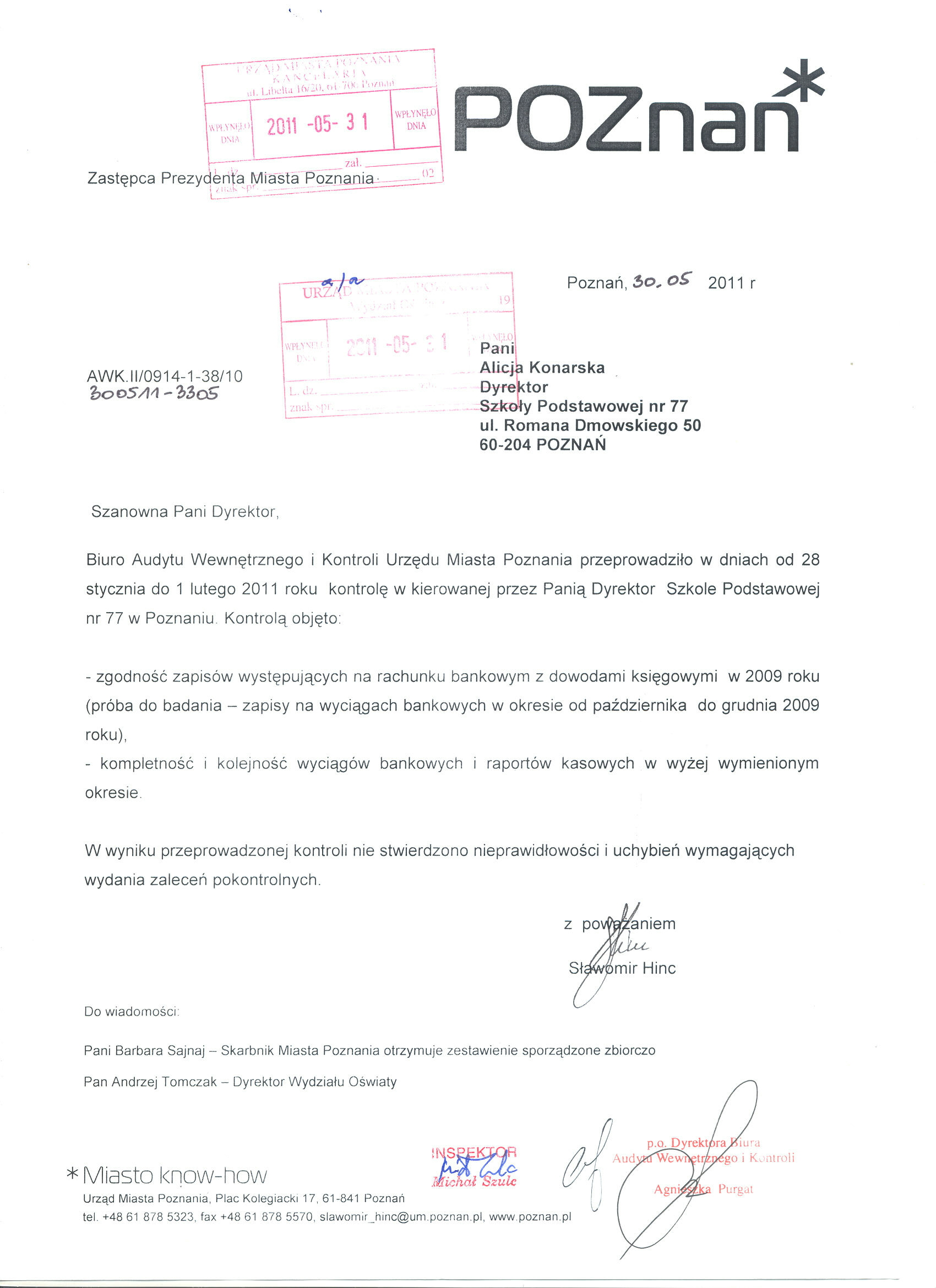 Informacja pobrana do BIP automatycznie z elektronicznego systemu zarządzania dokumentacją Urzędu Miasta Poznania.