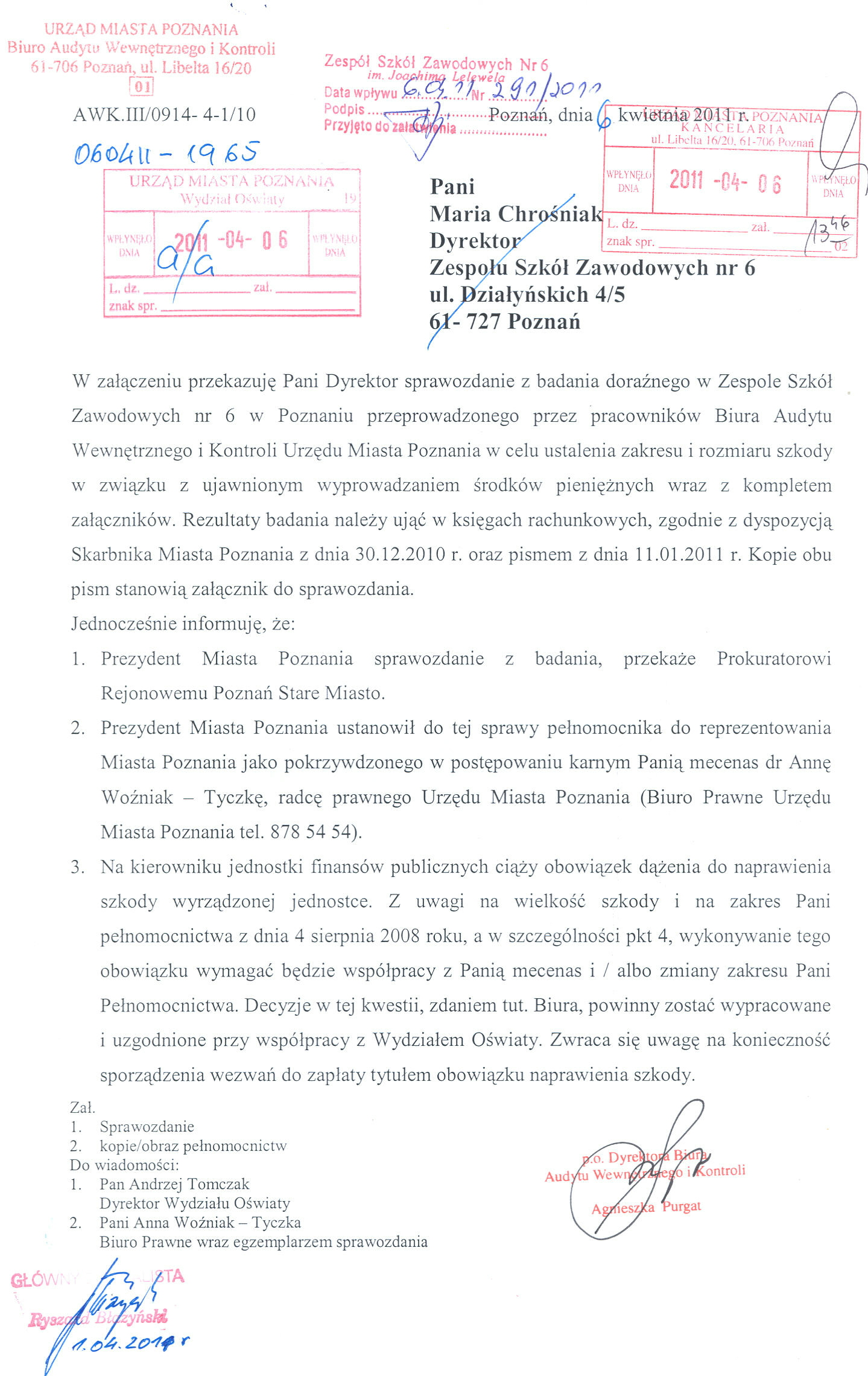 Informacja pobrana do BIP automatycznie z elektronicznego systemu zarządzania dokumentacją Urzędu Miasta Poznania.