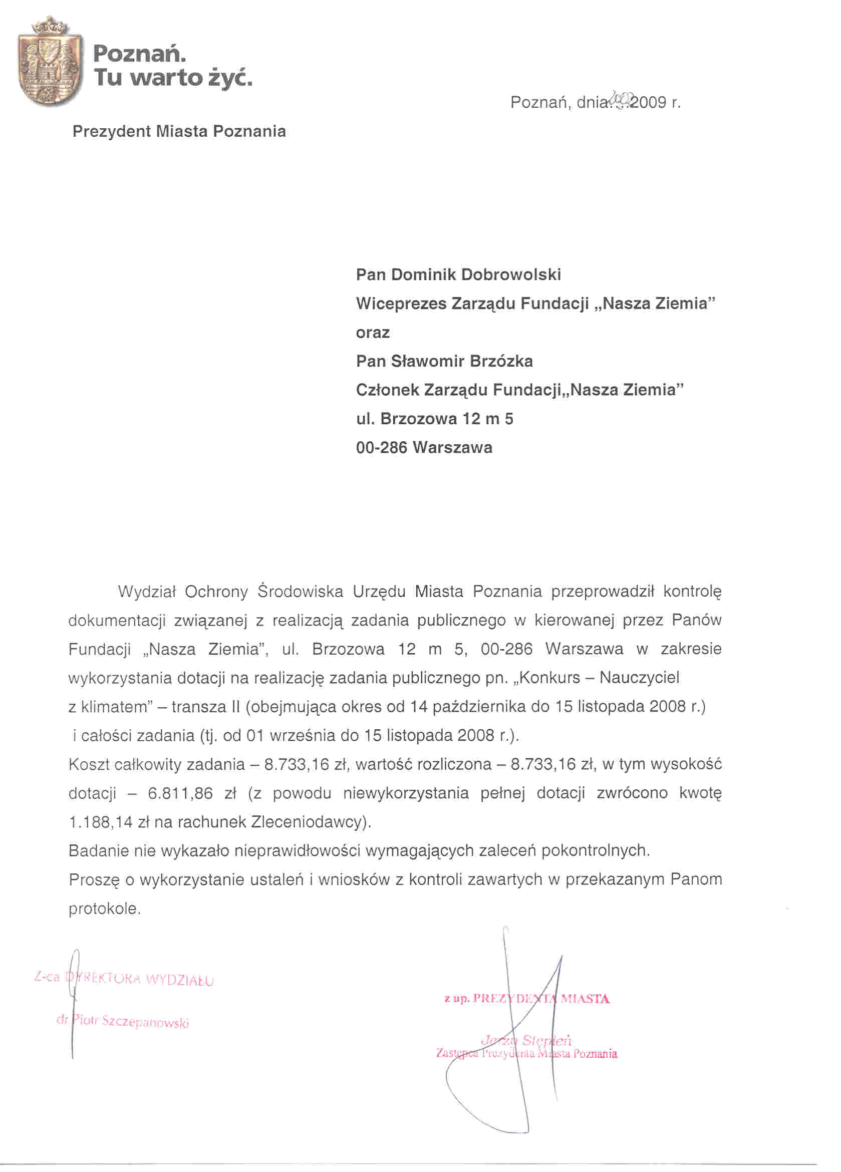 Informacja pobrana do BIP automatycznie z elektronicznego systemu zarządzania dokumentacją Urzędu Miasta Poznania.