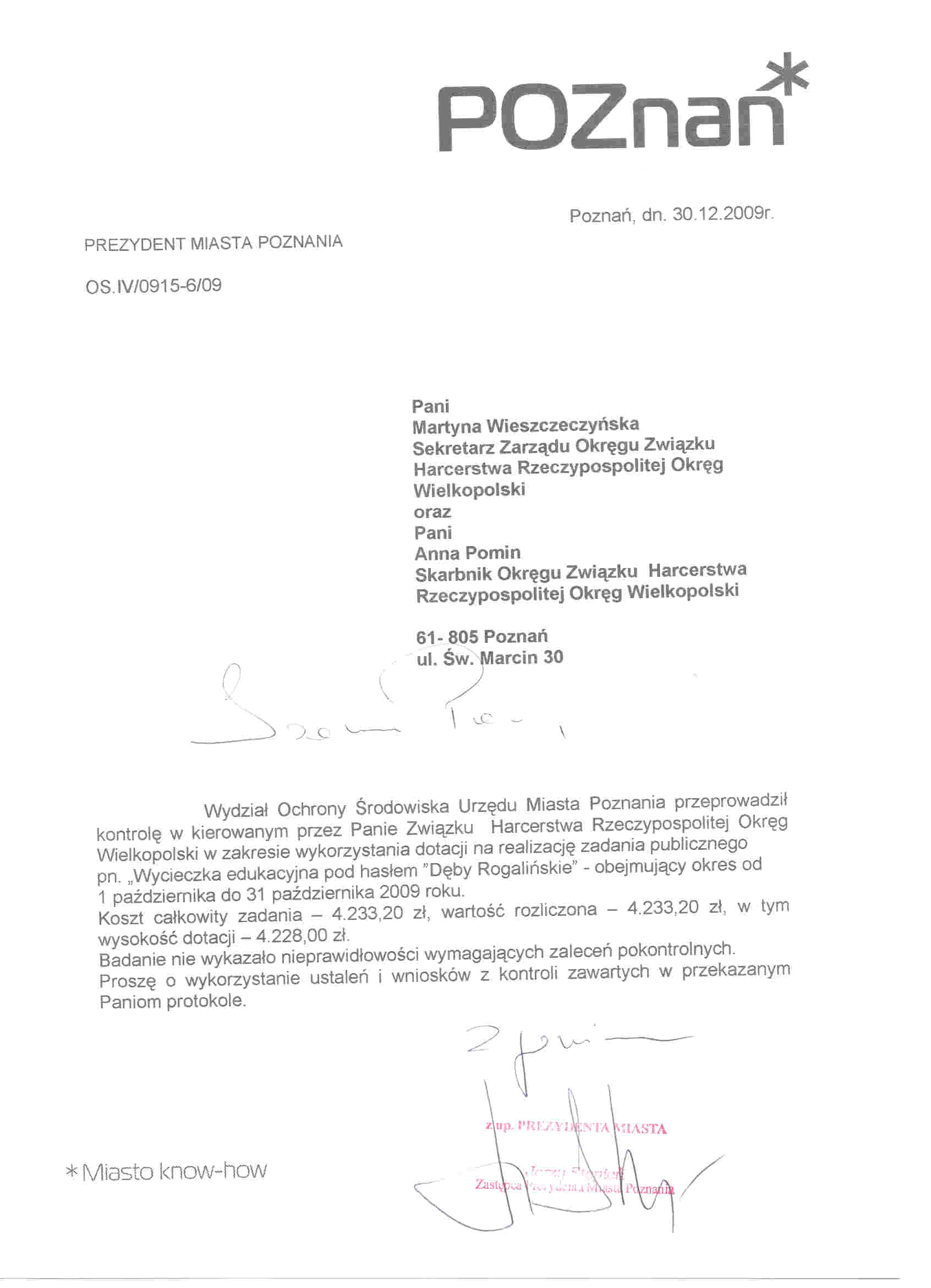 Informacja pobrana do BIP automatycznie z elektronicznego systemu zarządzania dokumentacją Urzędu Miasta Poznania.