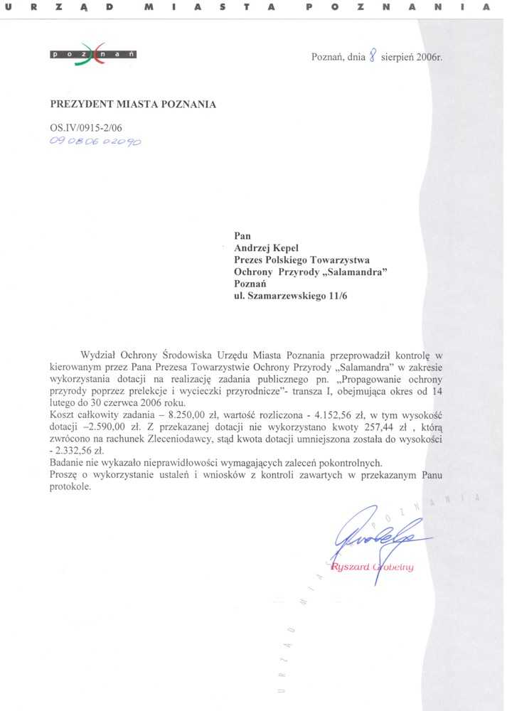Informacja pobrana do BIP automatycznie z elektronicznego systemu zarządzania dokumentacją Urzędu Miasta Poznania.