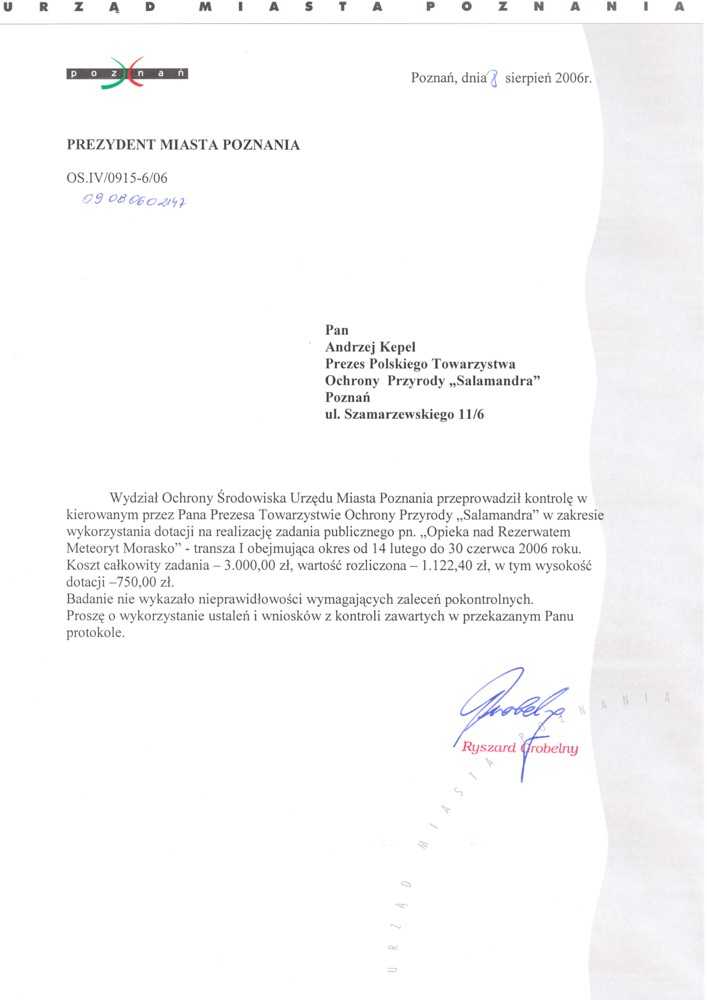 Wykorzystyanie dotacji na realizację zadania publicznego pn "Opieka nad rezerwatem Meteoryt Morasko- realizacja I transzy