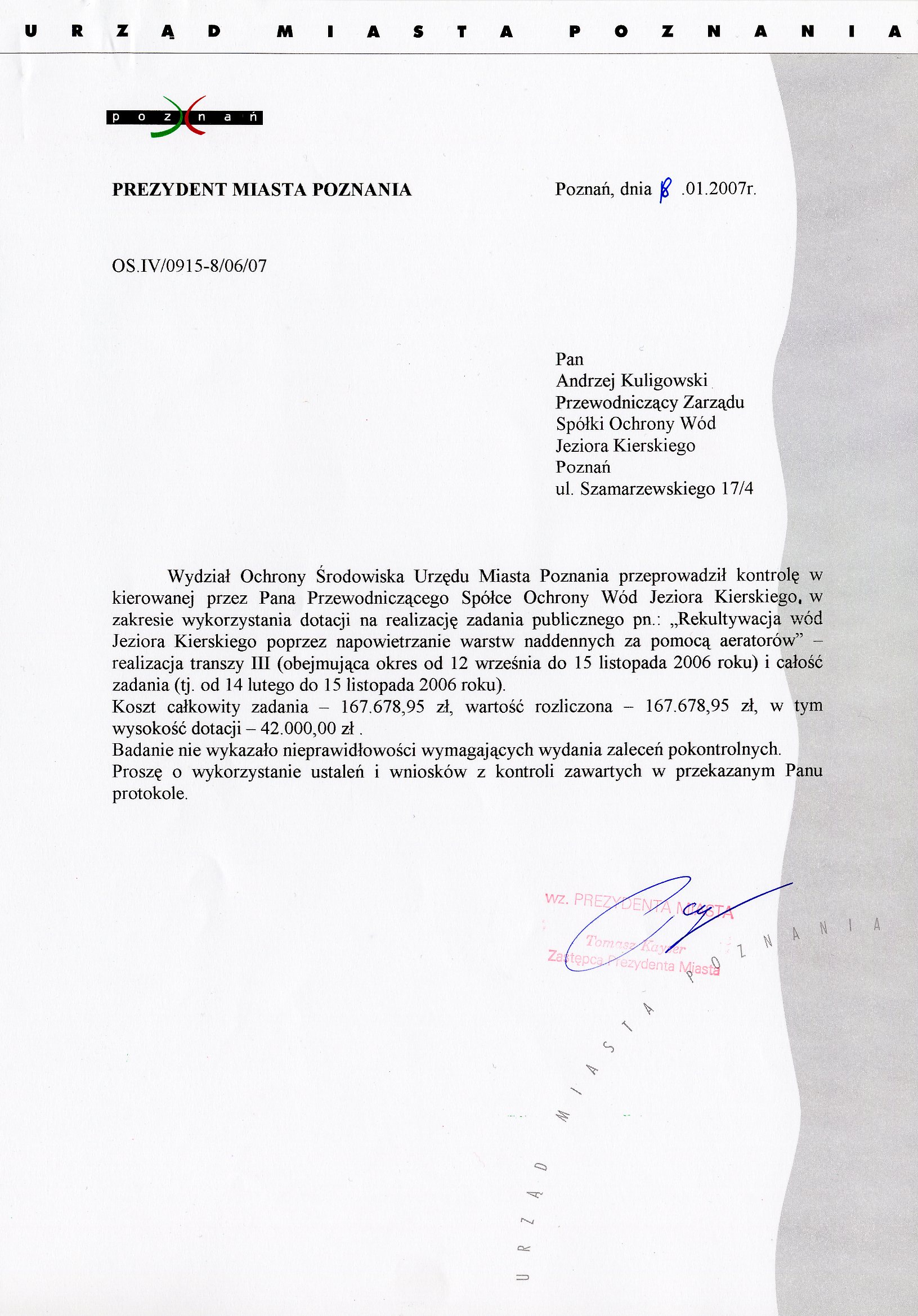 - Spółka wodna Ochrony wód Jeziora Kierskiego Poznań, Szamarzewskiego 17 nr lok. 4, Poznań