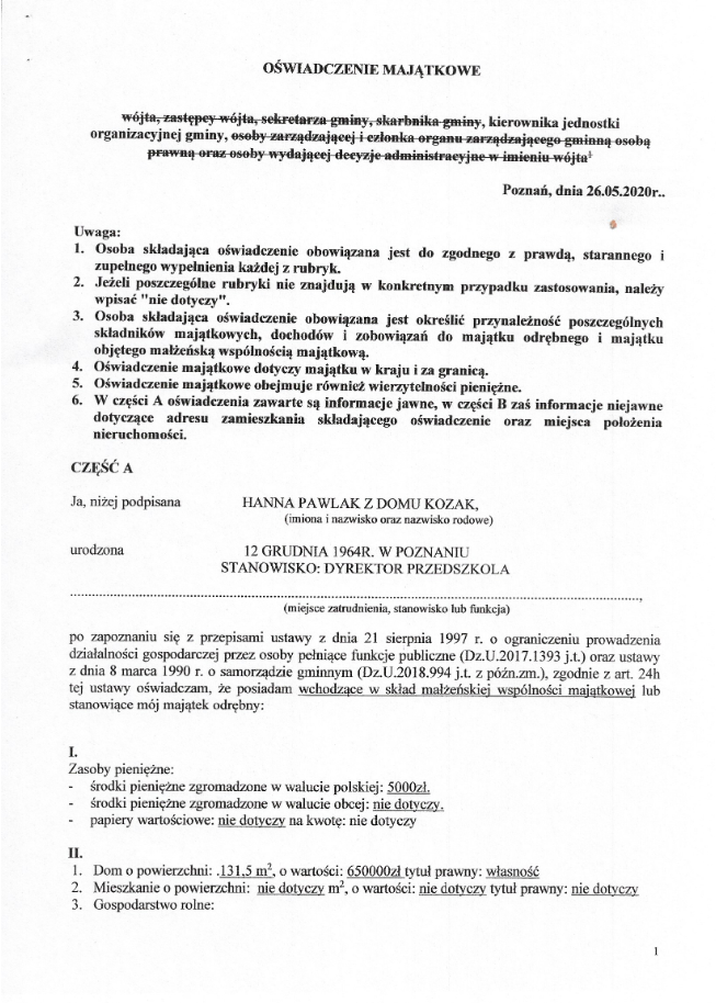 Oświadczenia majątkowe wg jednostek - Przedszkole Nr 46